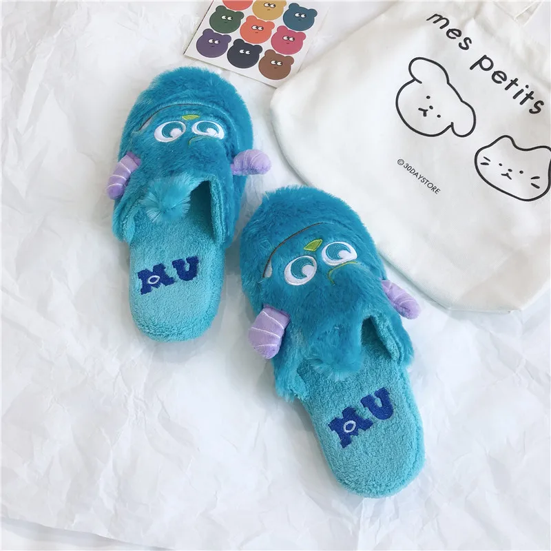 Color: Pink, Shoe Size: 38 - Cartoon Sulley Mike Slippers Cute Girl Warm Home Slippers Women Indoor Slippers Blue Duck Kawaii Non-slip Slippers Gifts EU36-41