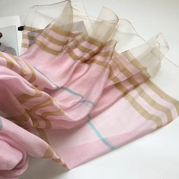 Color: Pink - Silk&Wool Scarf For Women Four Seasons Scarf Big Size 84*190cm