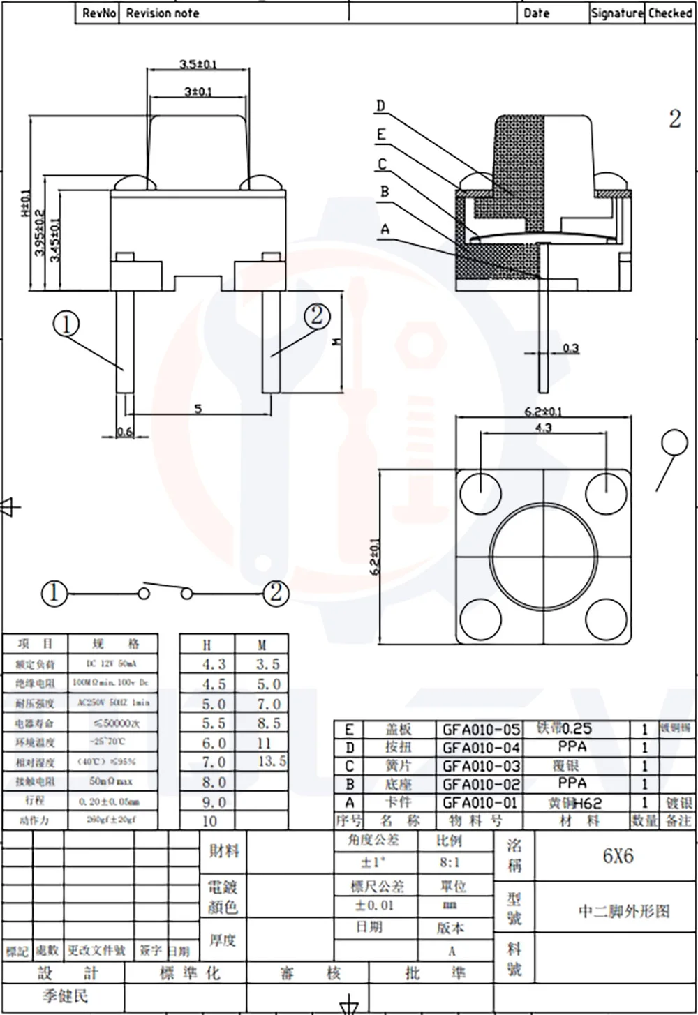 (Specification of TACT switch Series)