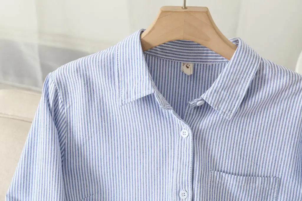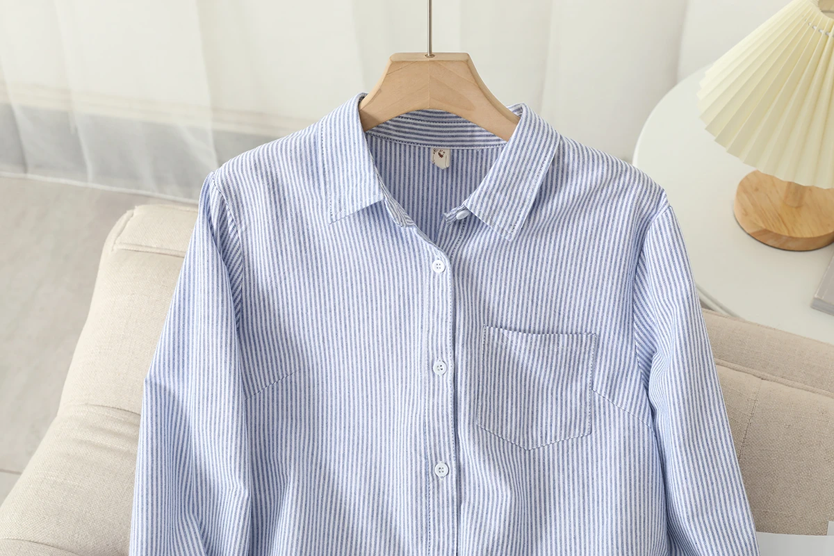 Color: Pink, Size: M - Women's Casual Cotton Oxford Shirt 2023 New Woman Striped Blouse and Tops Simple Solid Lady White Blue Shirts Clothes