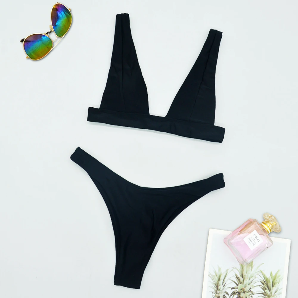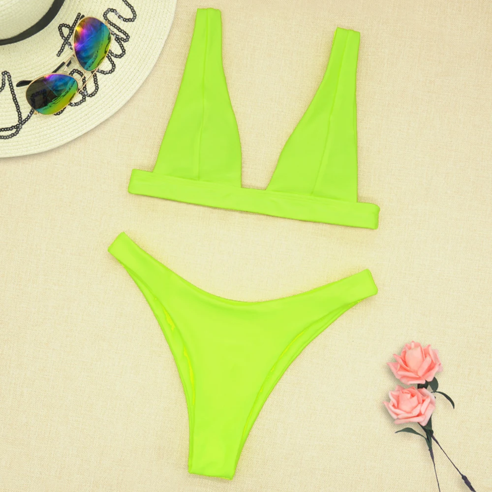 Color: Pink, Size: S - 2023 New Sexy Solid Bikini Women V-neck Swimwear Two Pieces Swimsuit Female Low Waist Bikini Set Brazilian Bathing Suit Bathers