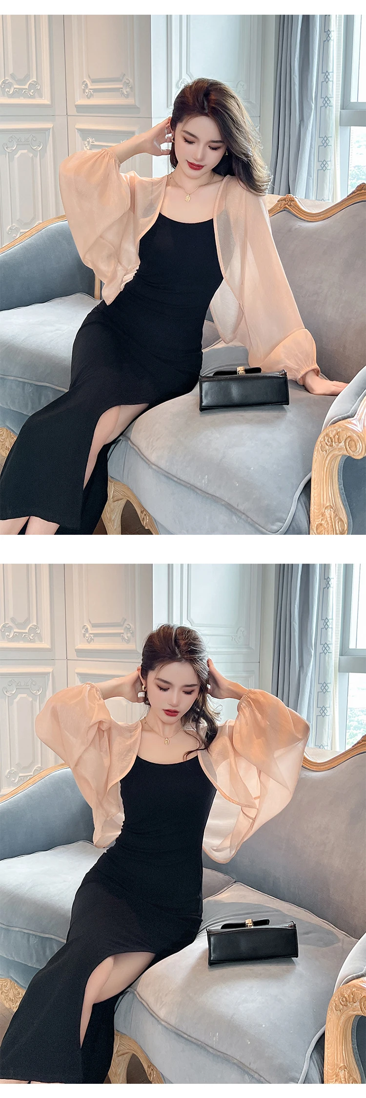 Color: Pink, Size: S, Ships From: CN - 2023 Elegant Chic Sunscreen Tops Women's Summer Thin Cardigan Coat Light Thin Long Sleeve Back Slit Outwear Sheer Loose Jackets