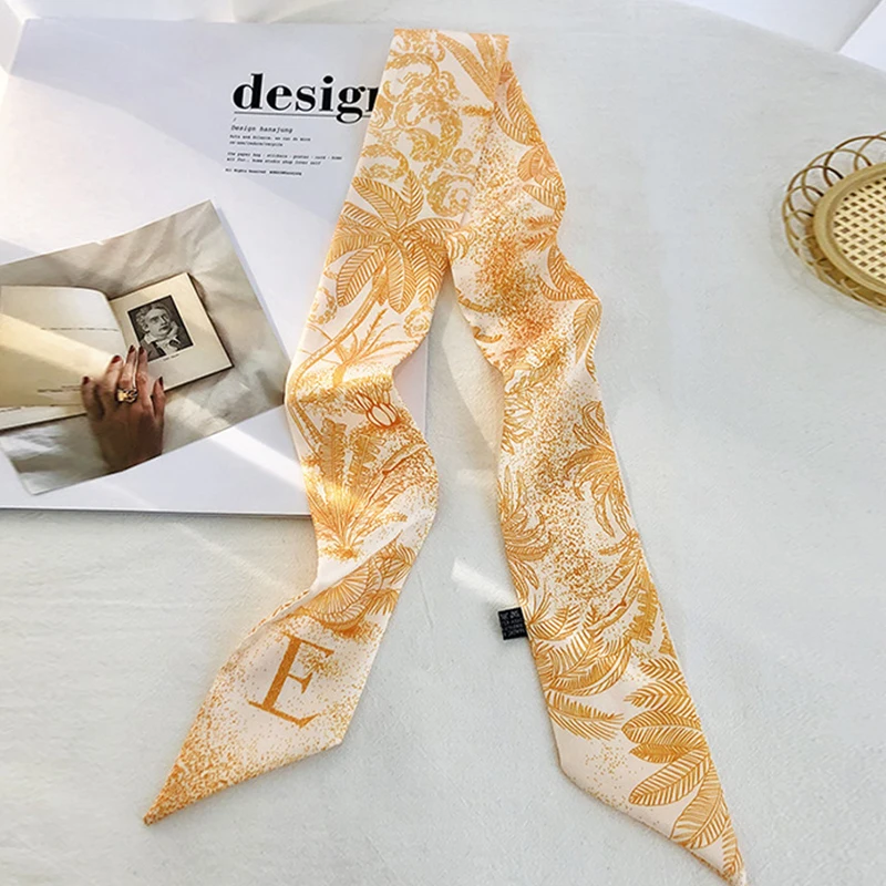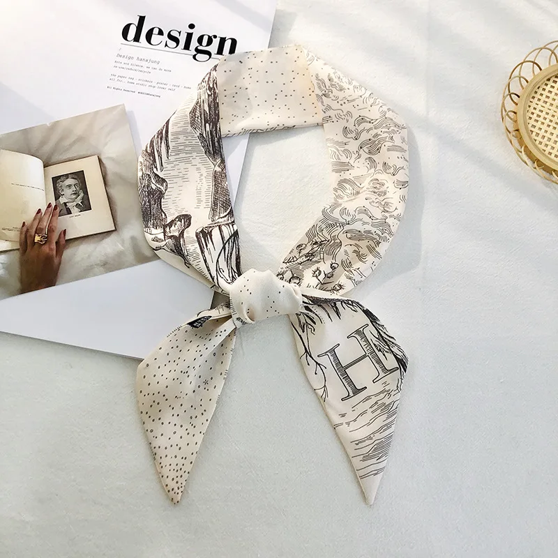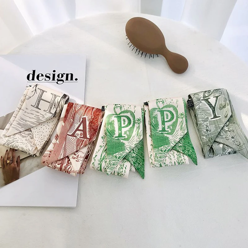 Color: Pink - Sketch Style 26 Letters Temperament Small Scarf Long Silk Scarf Hair Band Narrow Headband Hair Tie Bag Handle Hair Accessories