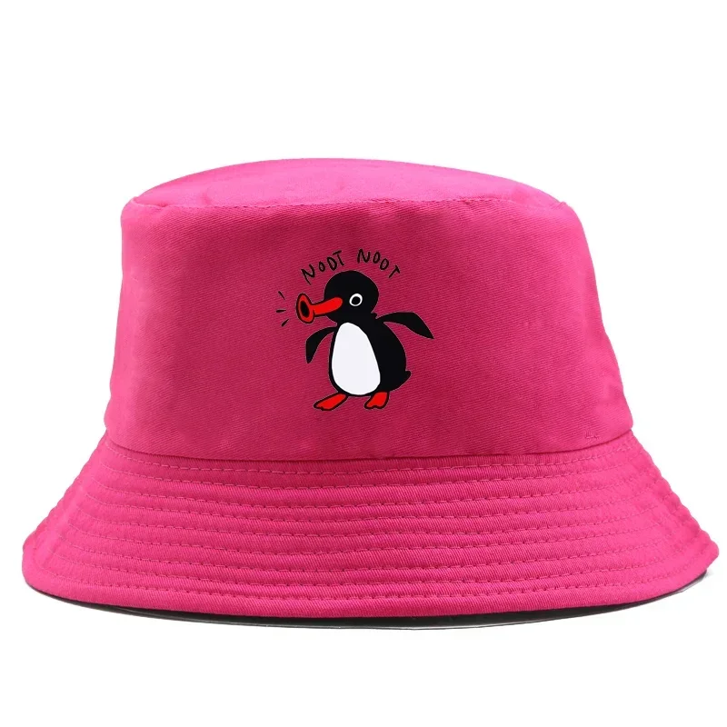 Color: Pink - Summer Penguin Bucket Hat Reversible Bob Men Women Cotton Travel Beach Fisherman Hat Outdoor Sports Pull Up Bob Panama Sun Hat