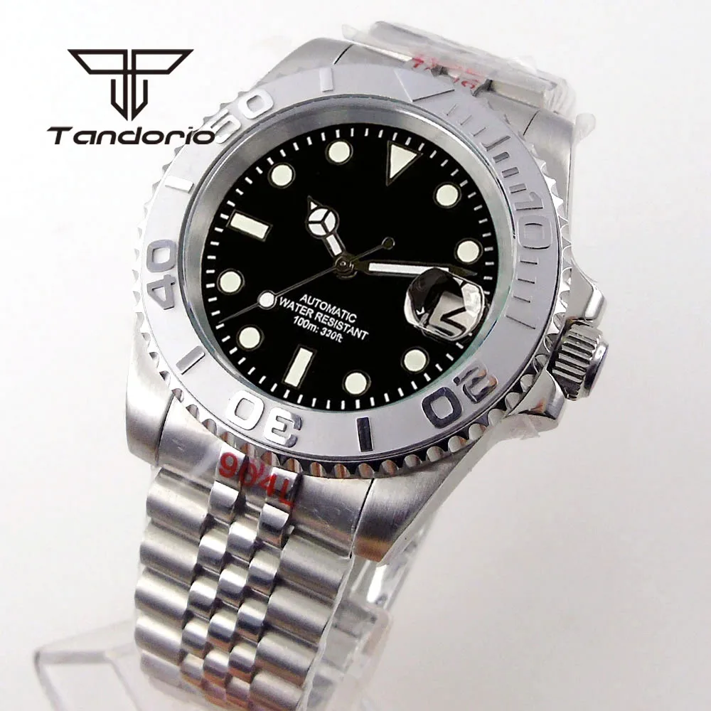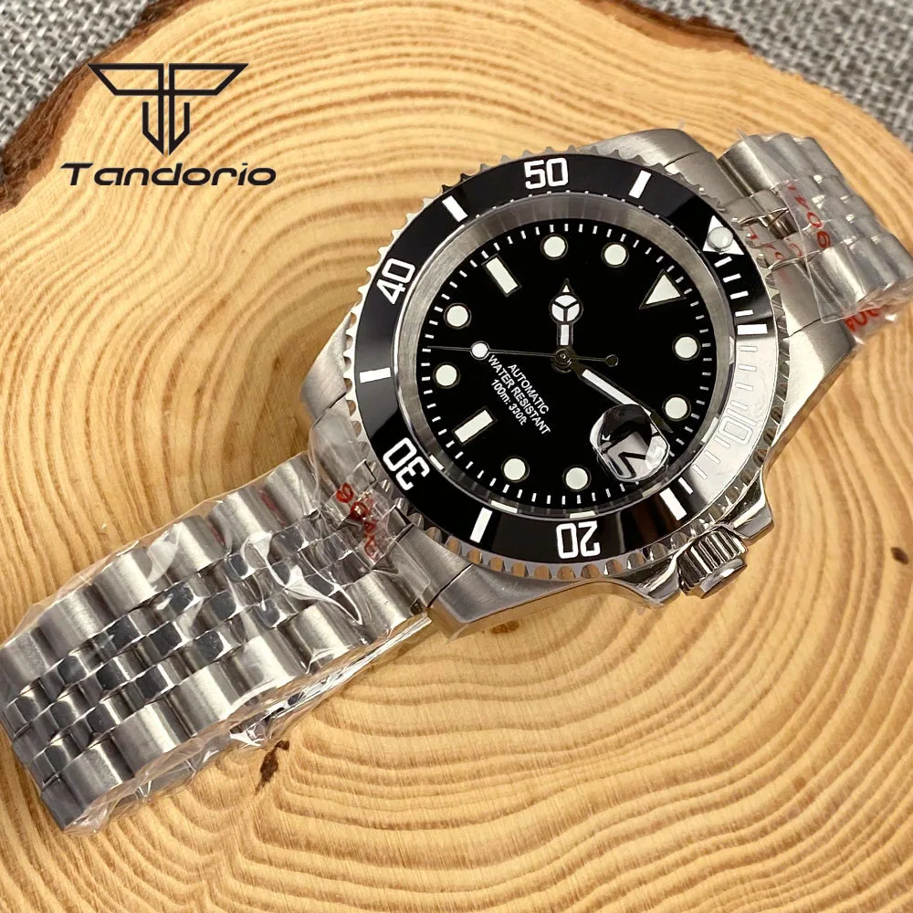 Color: Pink - Tandorio NH35A Date Stainless Steel 40mm Dive Automatic Men Watch Sapphire Crystal Rotating Bezel Luminous Mechanical Wristwatch