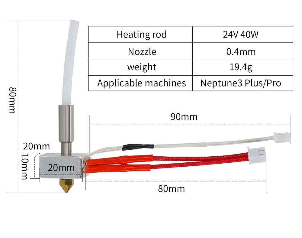 Feature:accelerates the nozzle to dissipate heat, and the heat breakage to insulate, and releases the nozzle blockage.