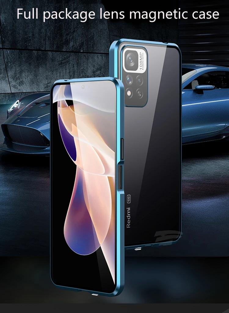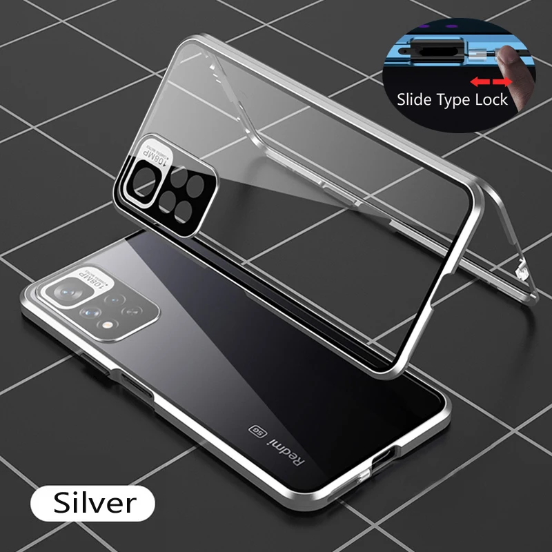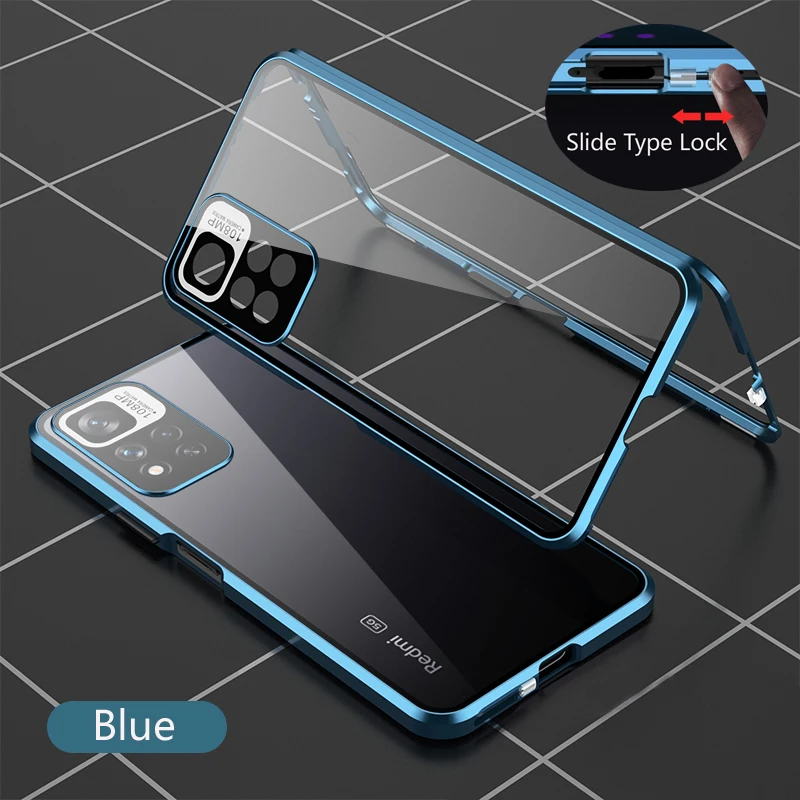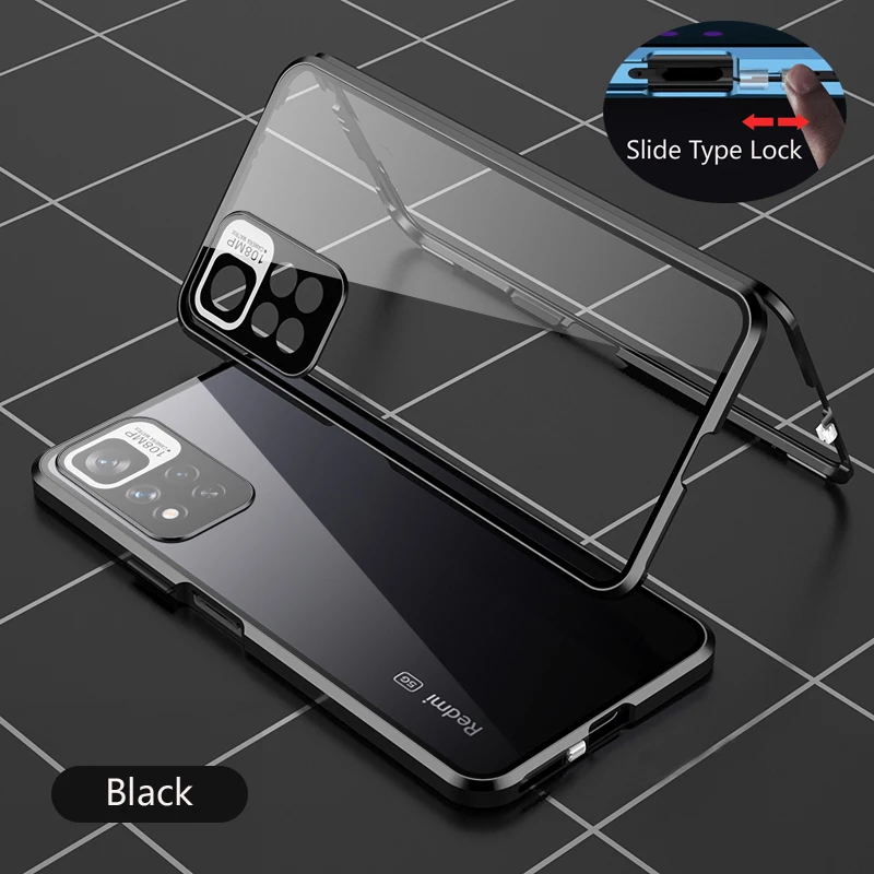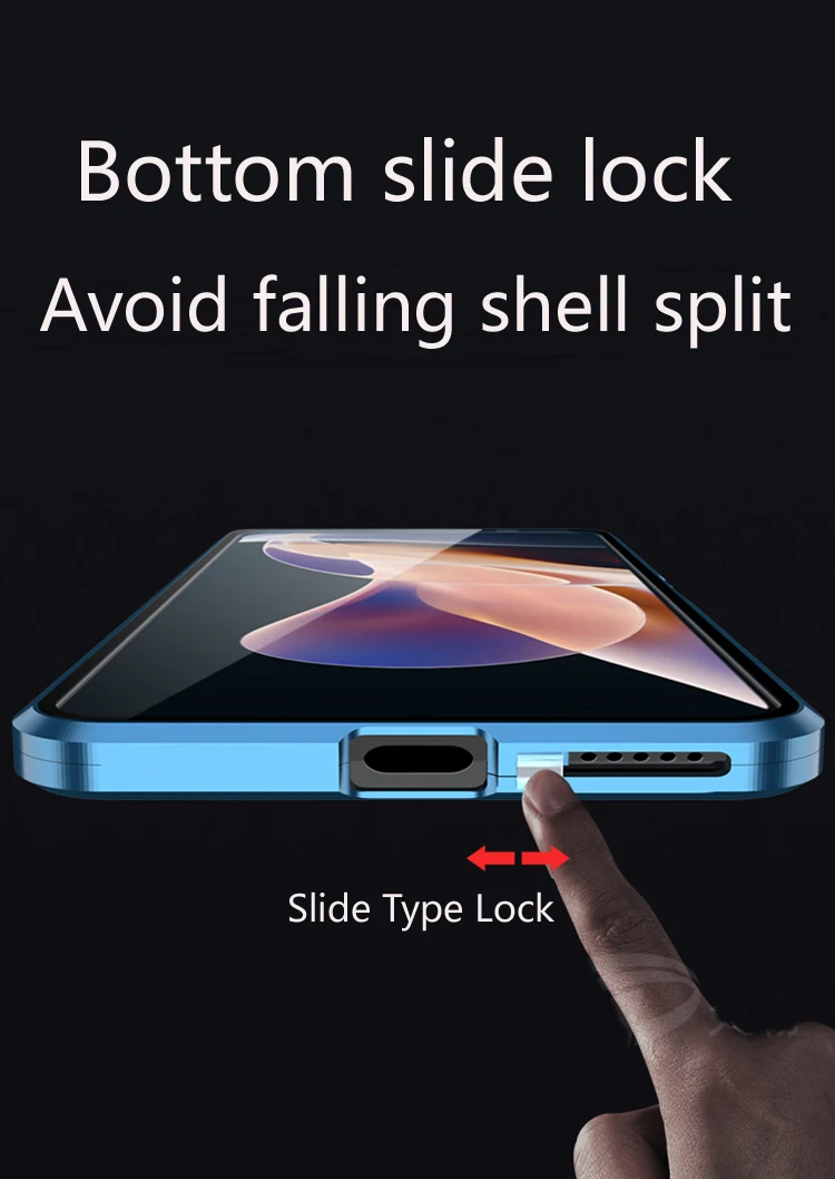 Full Protection Case Metal Magnetic Double Sided Glass Snap Lock Case For XiaoMi Redmi Note 13 Pro Plus 5G Bumper Phone Cover