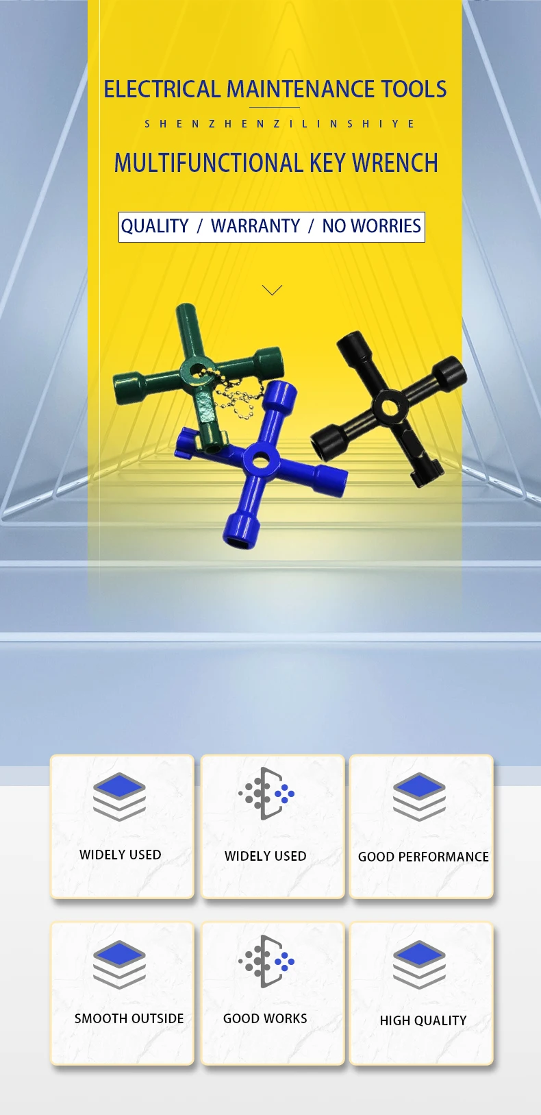 Color: PURPLE - Electric Cabinet Car Elevator Cross Key Wrench Water Meter Valve Key Internal Triangle Multi-purpose Tool Portable Blue Green