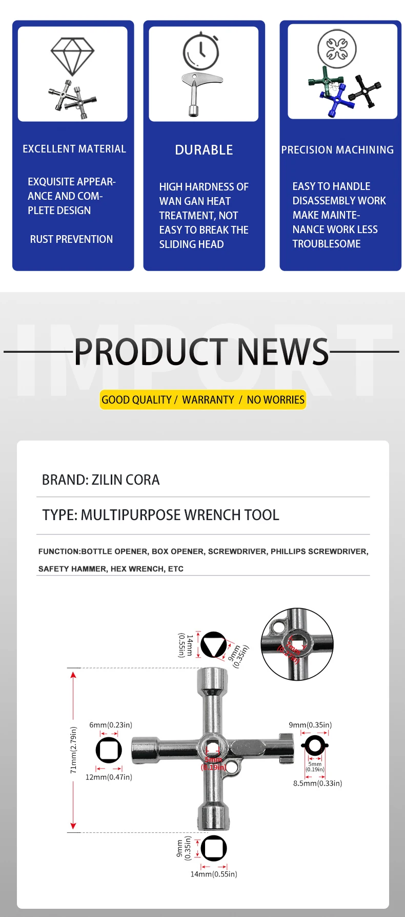 Color: PURPLE - Electric Cabinet Car Elevator Cross Key Wrench Water Meter Valve Key Internal Triangle Wrench Multi-purpose Tool Portable