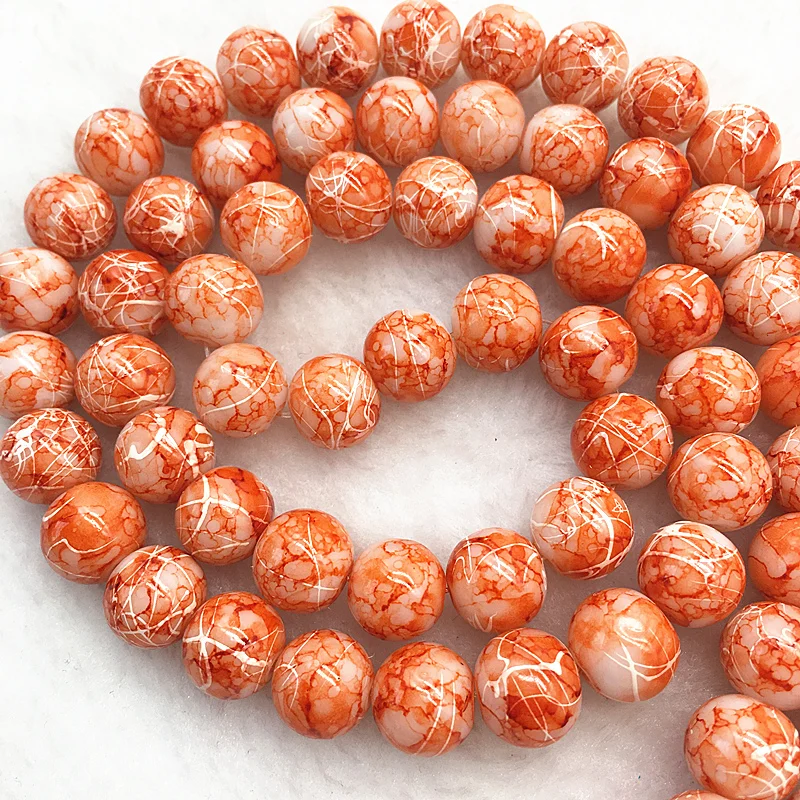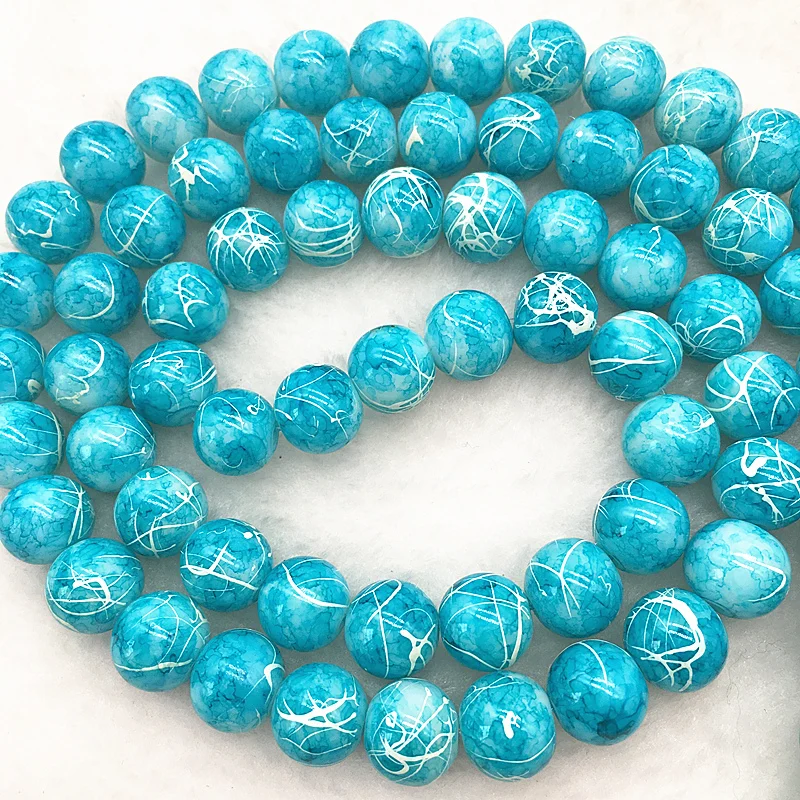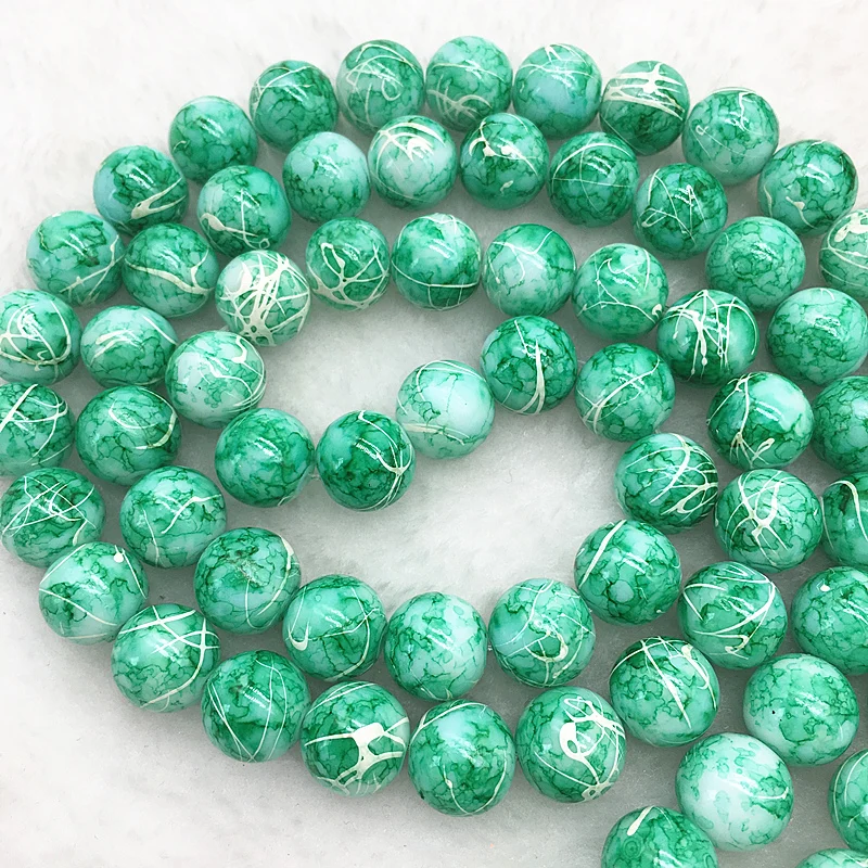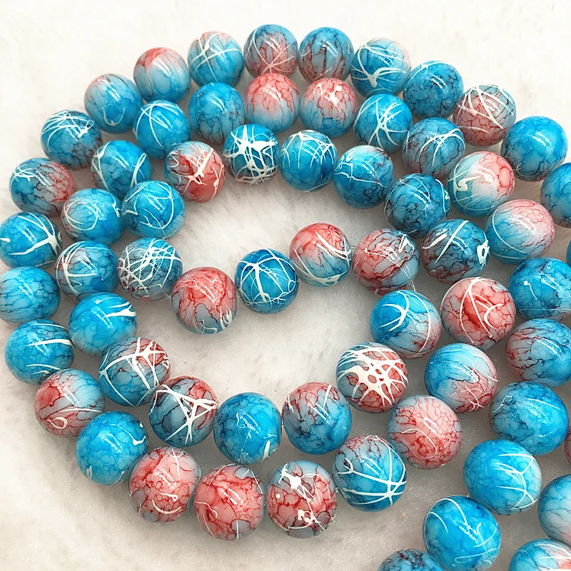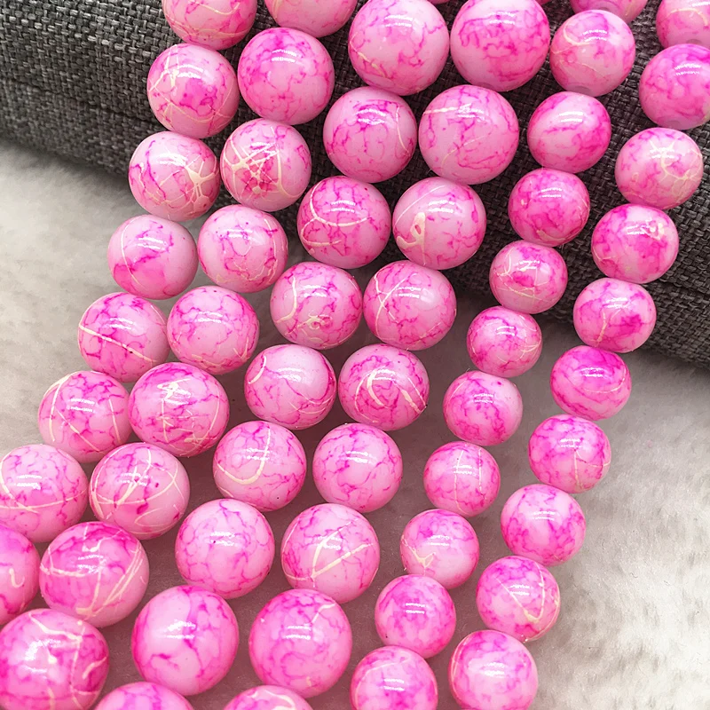 Color: PURPLE, Item Diameter: 4mm - Wholesale 4/6/8/10mm Glass Beads Round Loose Spacer Beads Pattern For Jewelry Making DIY Bracelet Necklace