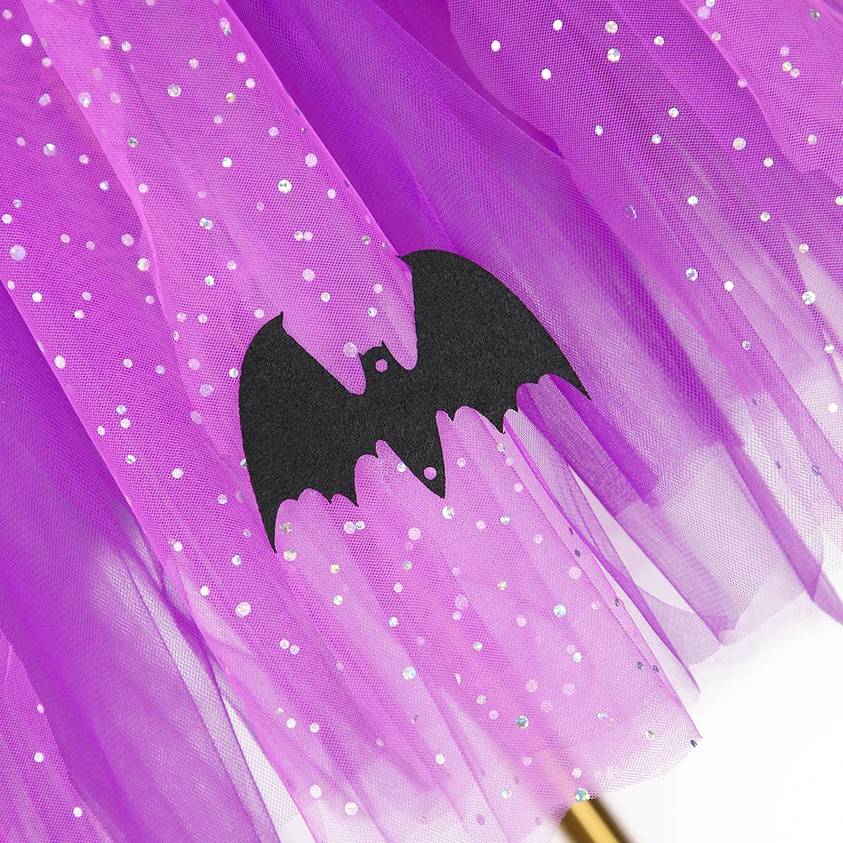 Color: PURPLE, Kid Size: 9 - Halloween Witch Tutu Dress for Girls Handmade Mesh Bat Wizard Cosplay Costumes with Hat Broom Toddler Evil Party Clothes Set