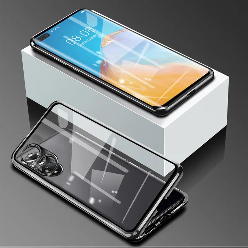 Phone Case Shell New 360° Double sided Protection Cover For Huawei P30 Pro P40 Pro Plus P40 Lite 5G Magnetic Adsorption Phone Sleeve bag