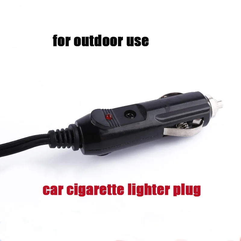 For use with a 12V vehicle power socket or any portable 12V power source.