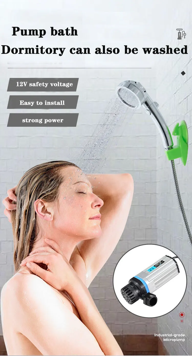 5. Direct 12V vehicle power supply drives miniature water pump, which is suitable for self-driving outdoor camping shower, temporary bathing after swimming (it is recommended to use special outdoor shower tent or dressing tent), car washing, watering flowers, etc.