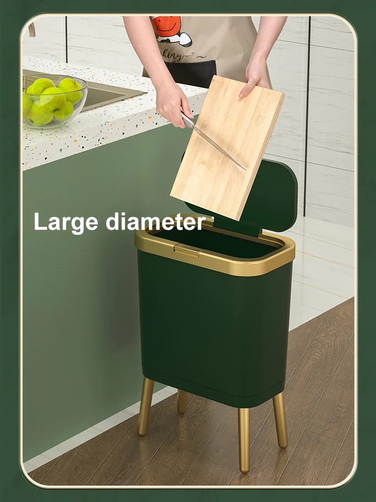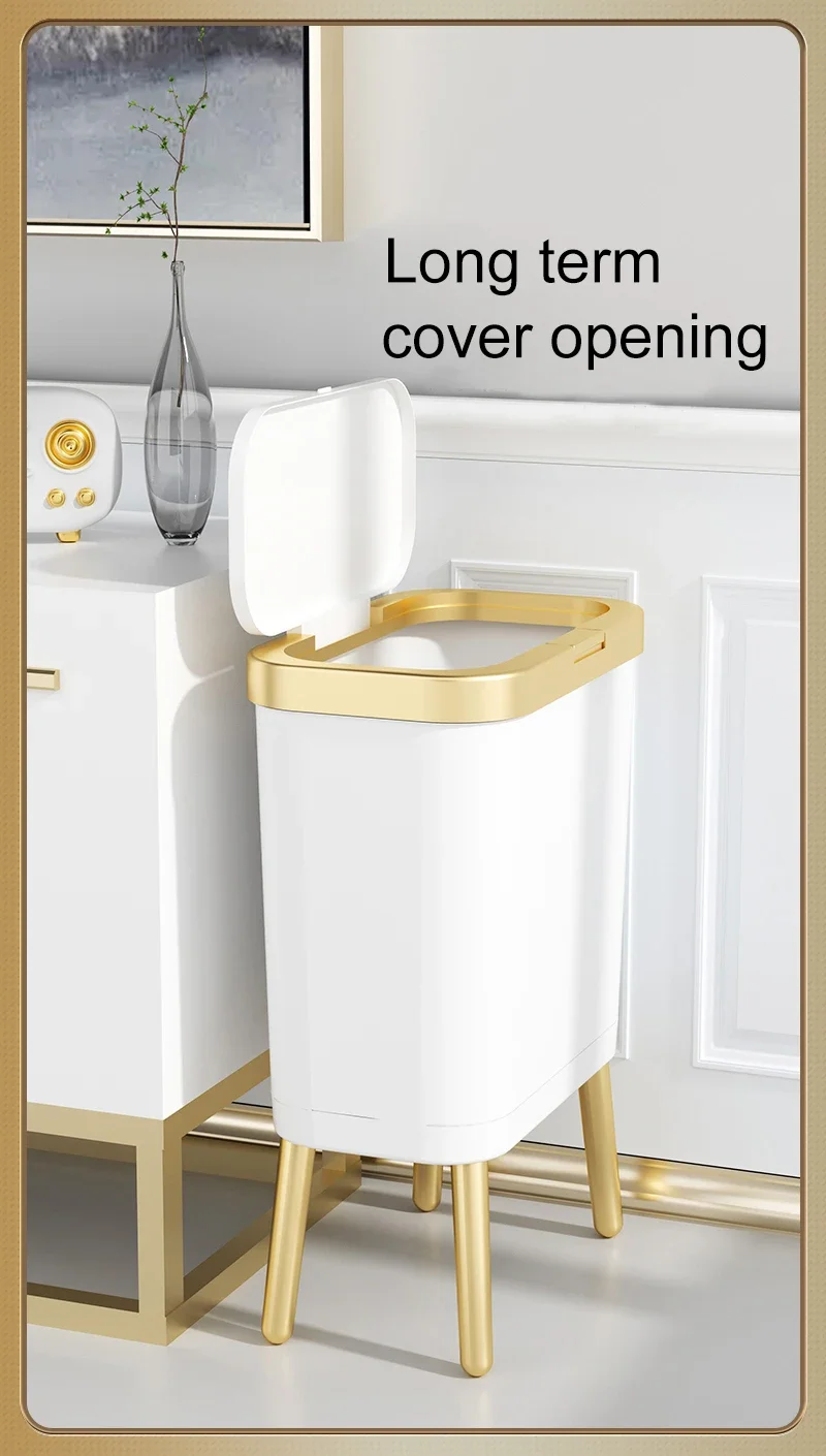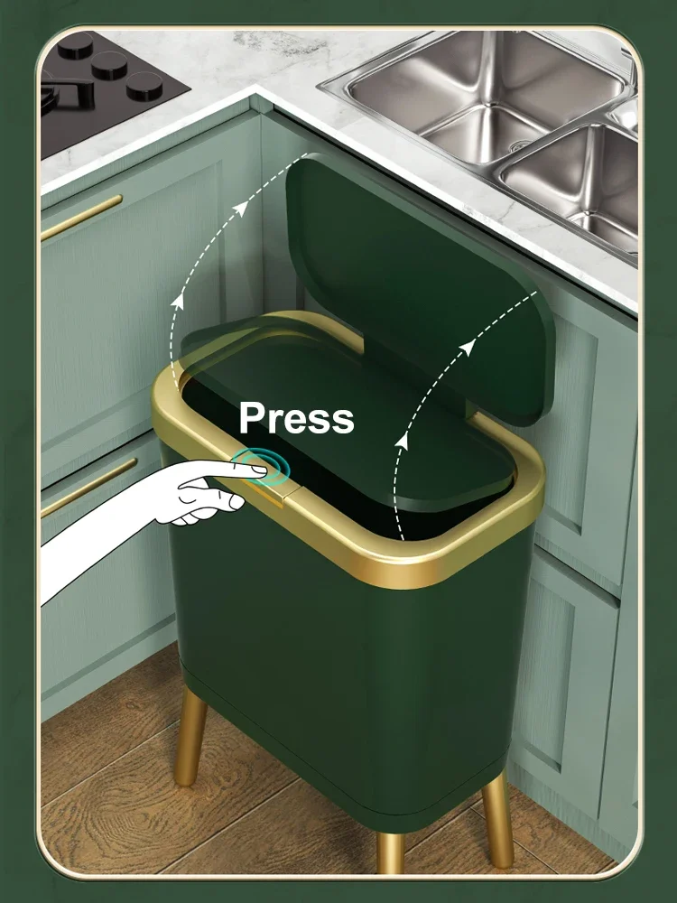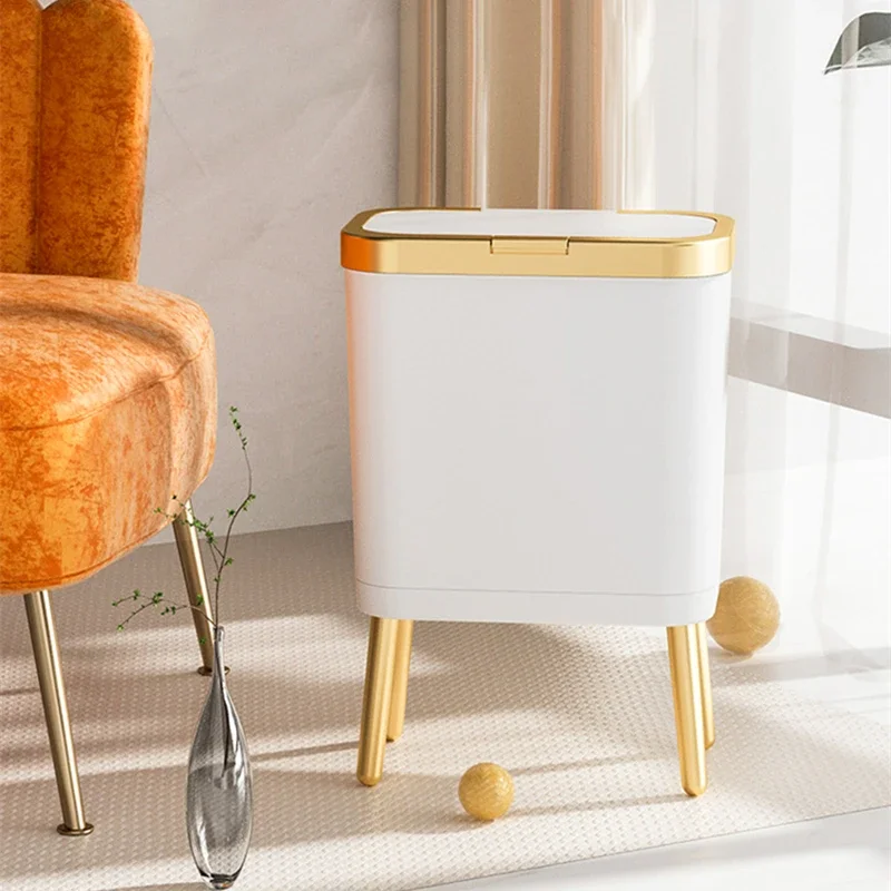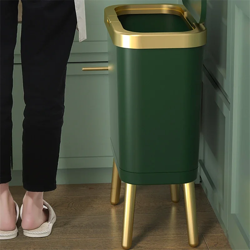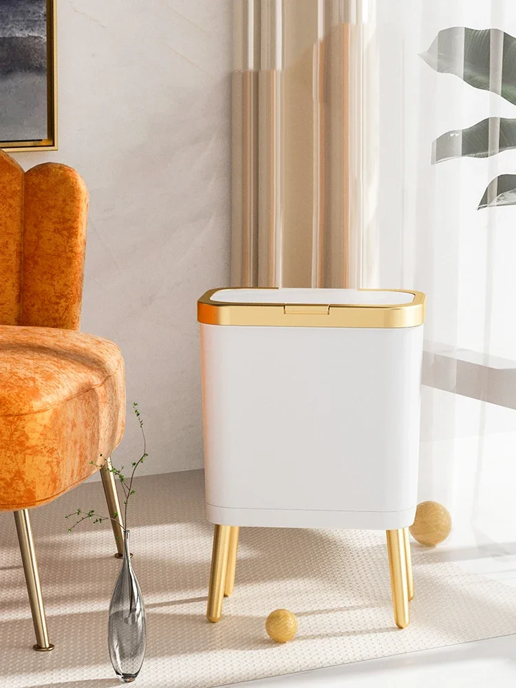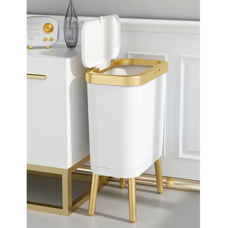 주방 욕실 용 15L 고급 황금 쓰레기통 대용량 쓰레기통 높은 발 푸시 형 플라스틱 쓰레기 쓰레기통 퇴비통