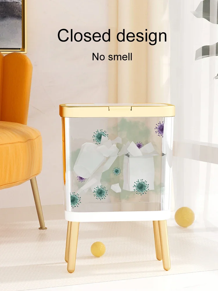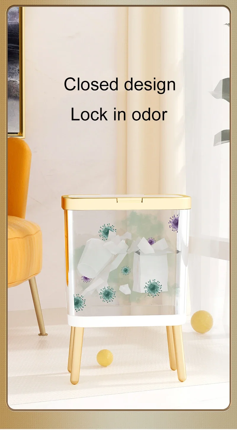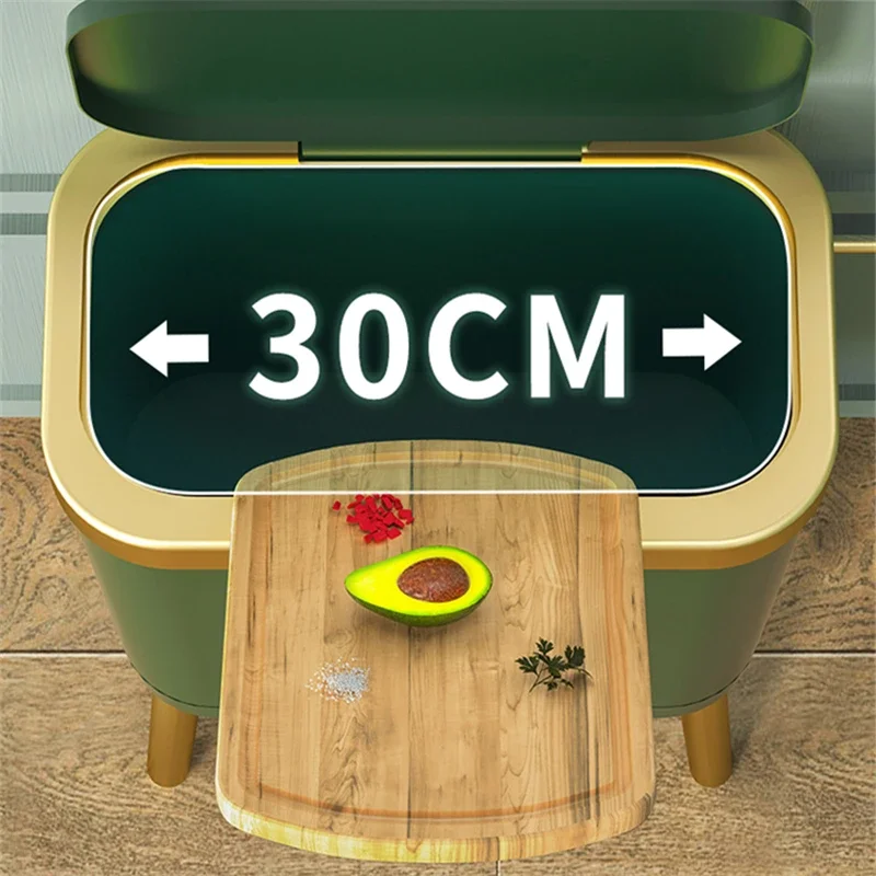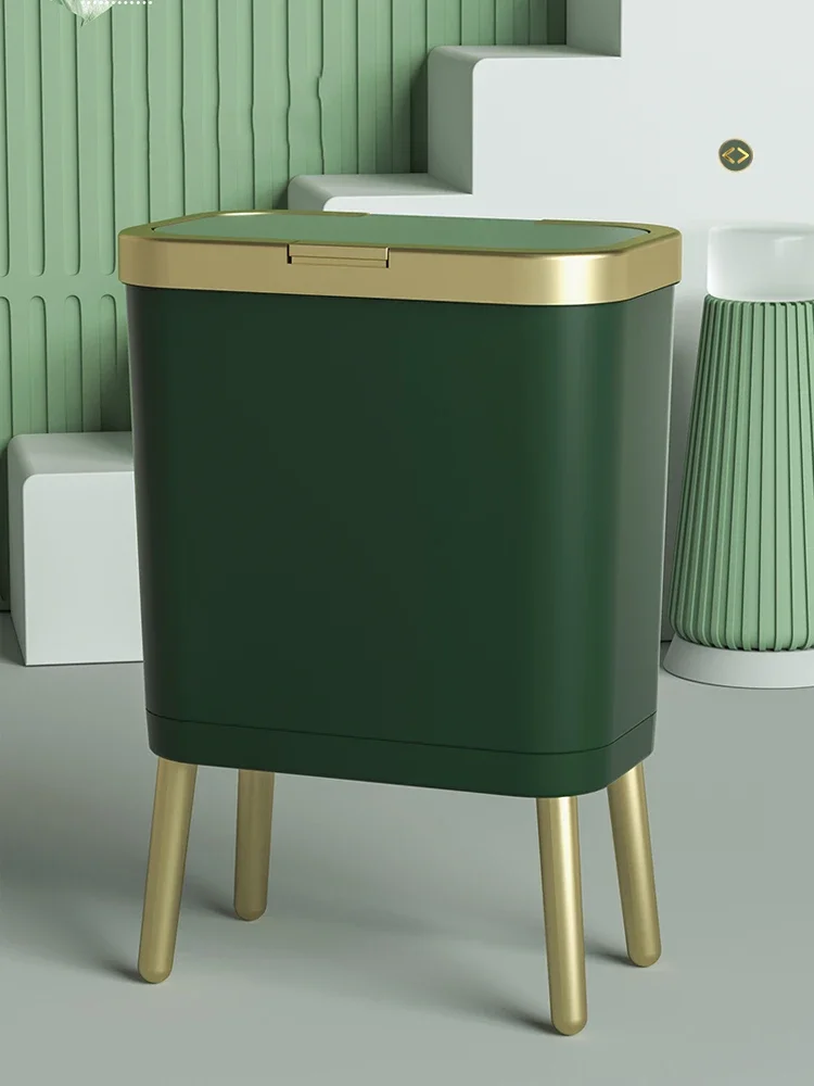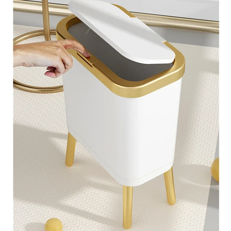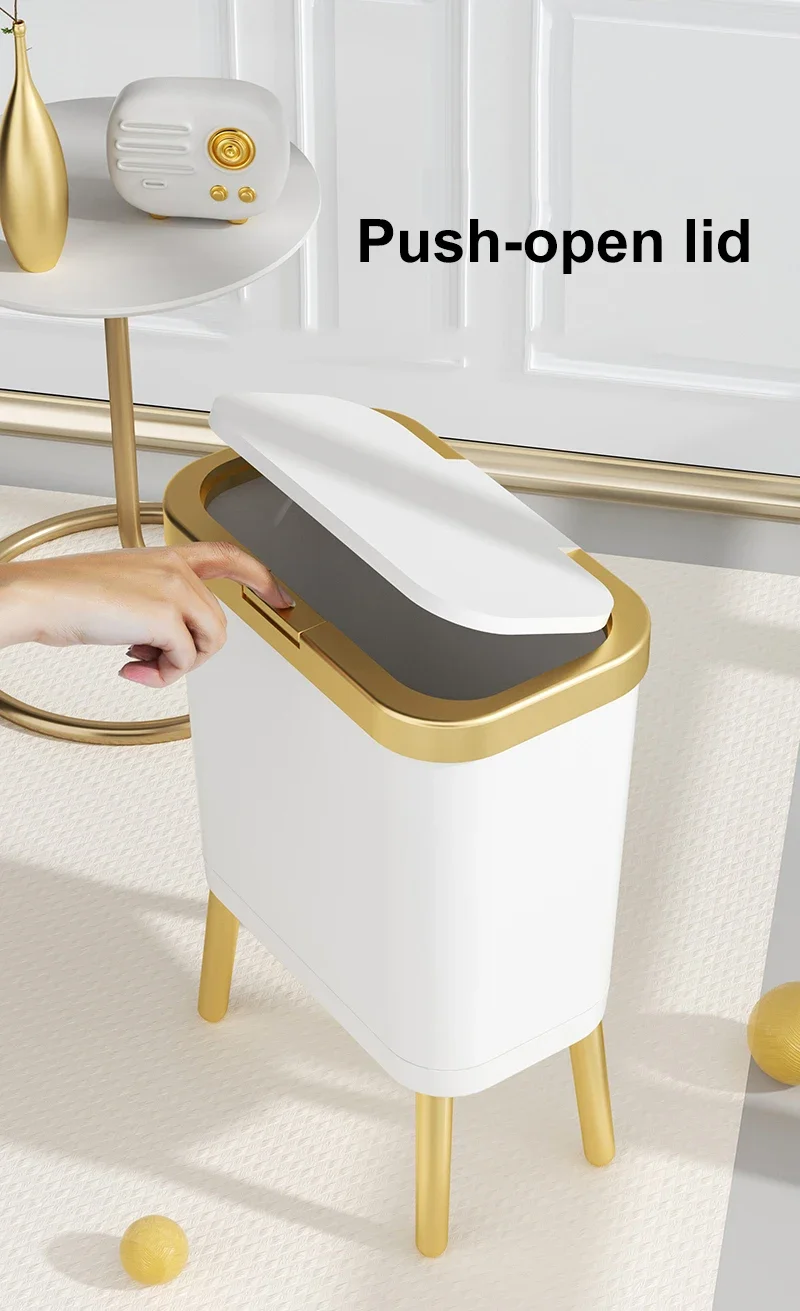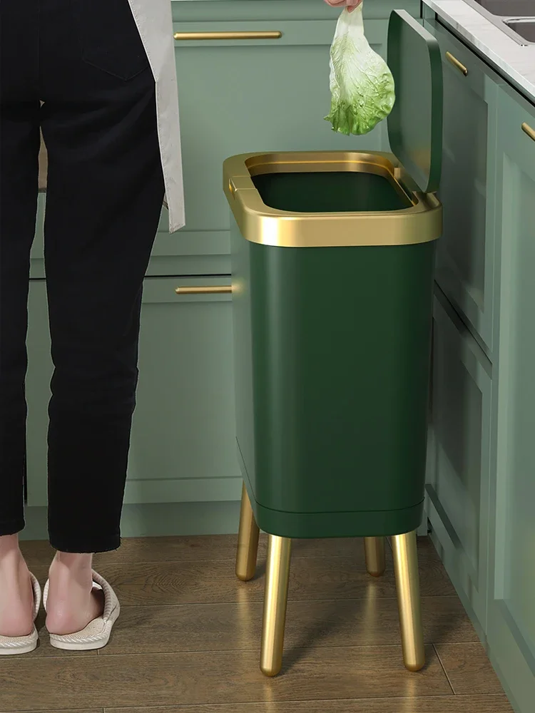 주방 욕실 용 15L 고급 황금 쓰레기통 대용량 쓰레기통 높은 발 푸시 형 플라스틱 쓰레기 쓰레기통 퇴비통