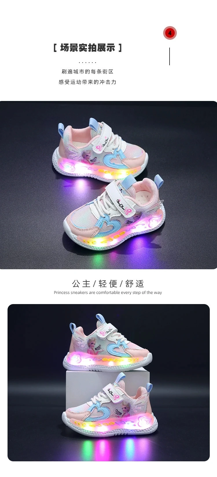 Color: PURPLE, Shoe Size: 21 - Disney Children Led Shoes Kids Girls Sneakers Frozen Elsa Princess Lighting Shoes Pink Purple Casual Sports Shoes Size 21-31