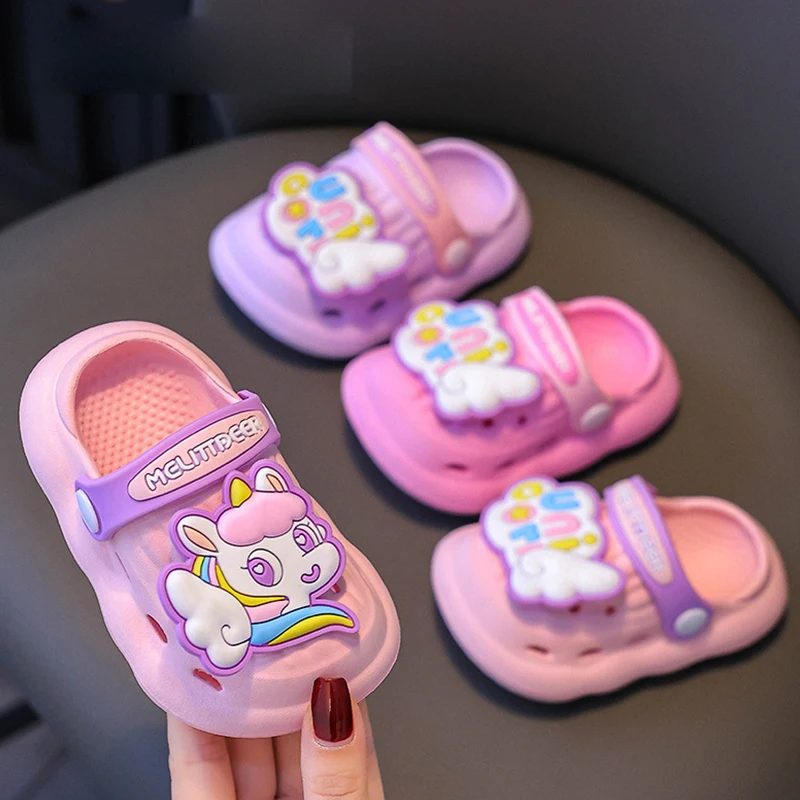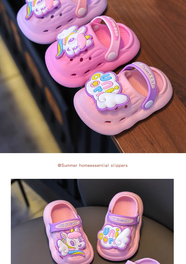 Color: PURPLE, Shoe Size: 3 - Summer Aged 0-4 Children Slippers Cute Cartoon Pony Baby Sandals For Girls Flip Flops Non-Slip Toddler Home Kids Garden Shoes