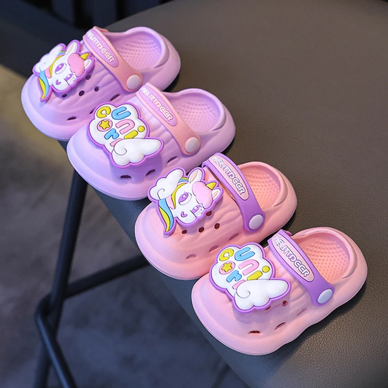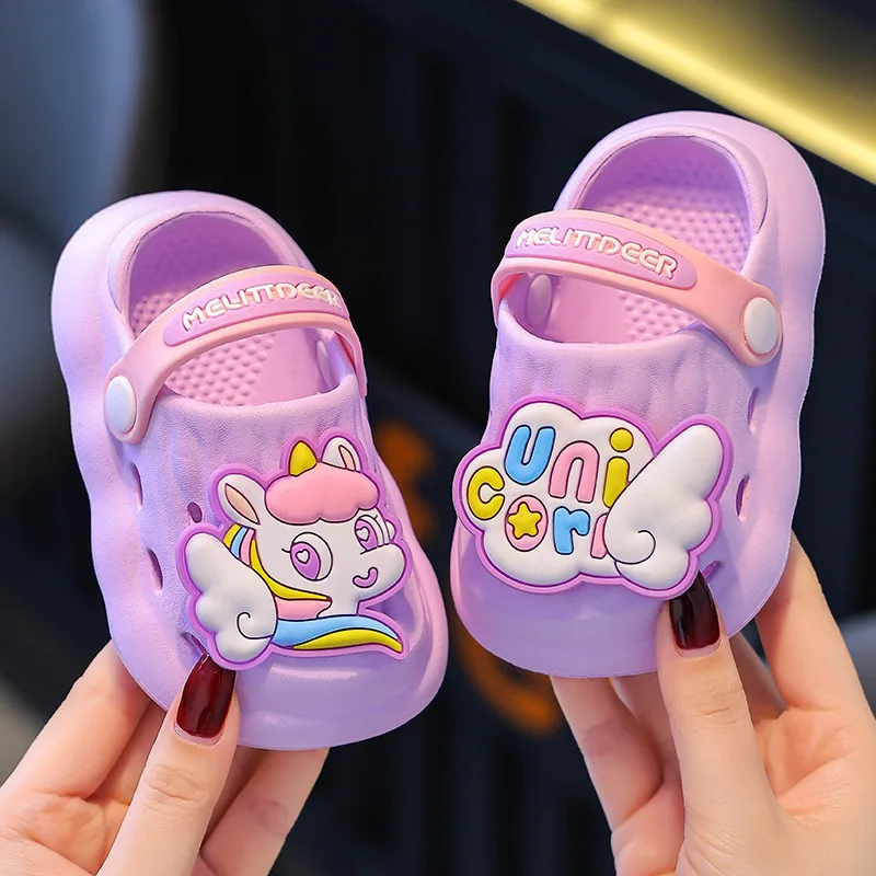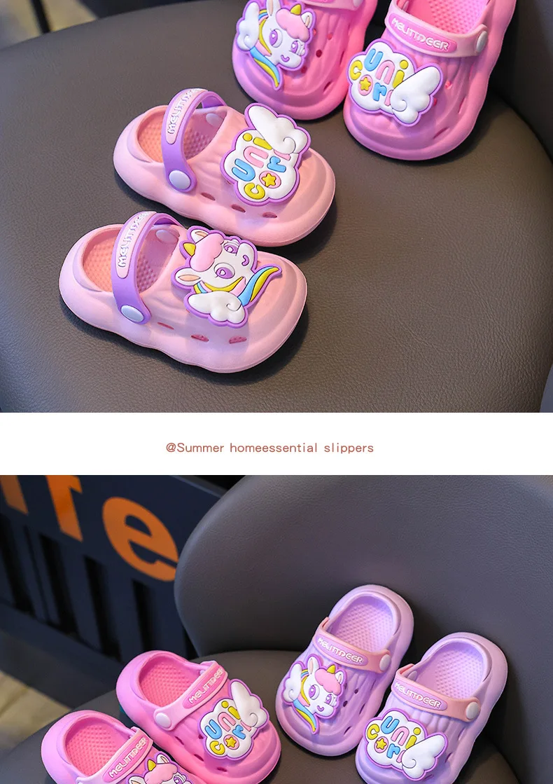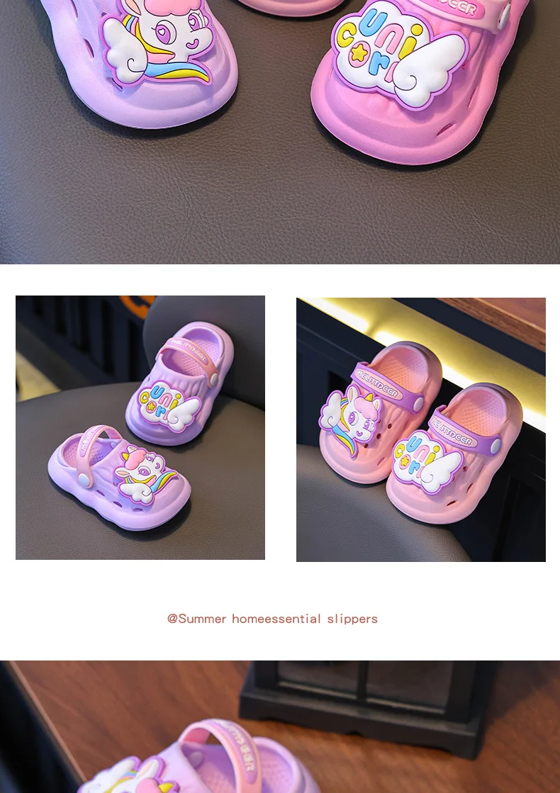 Color: PURPLE, Shoe Size: 3.5 - Summer Aged 0-4 Children Slippers Cute Cartoon Pony Baby Sandals For Girls Flip Flops Non-Slip Toddler Home Kids Garden Shoes