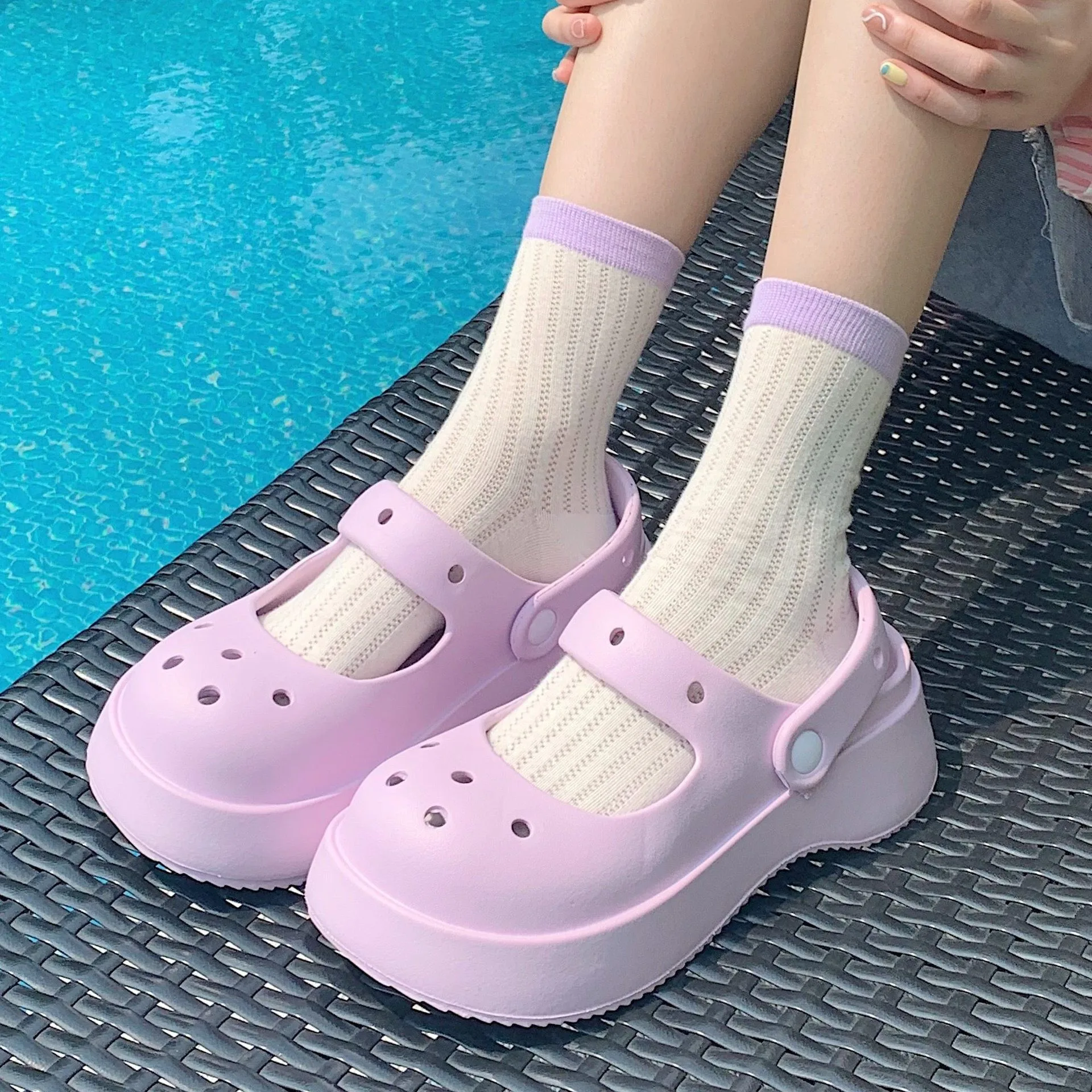 Color: PURPLE, Shoe Size: 37 - Summer Women Slippers Fashion Thick Bottom Hole Shoes EVA Slippers Anti Slip Baotou Slippers Outdoor Beach Sandals Slippers