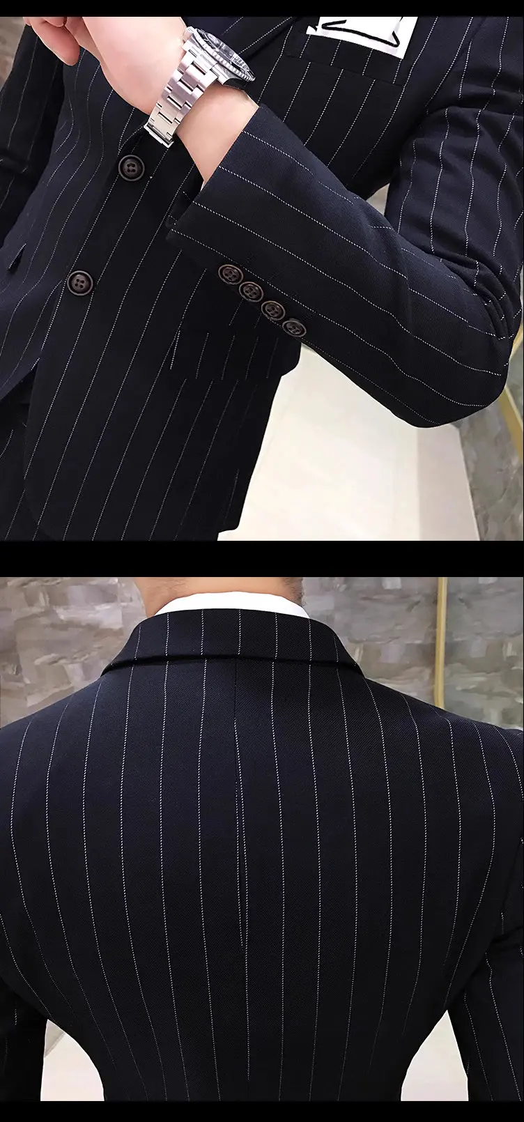 Color: PURPLE, Size: M - Gray Men Classic Striped/Checked Suits, Business Office 3 Piece, Asian Size Slim Fit Men Dress Jacket & Pants with Vest, S-4XL