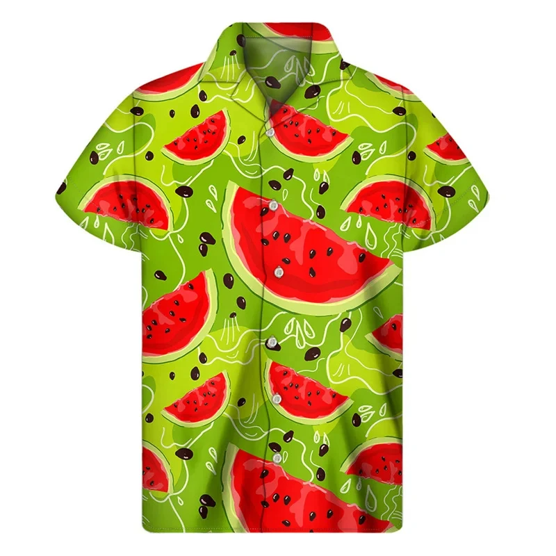 Color: PURPLE, Size: S - Tropical Watermelon Graphic Hawaiian Shirt Summer Street Short Sleeves 3d Printed Fruits Button Shirts Men Clothes Lapel Blouse