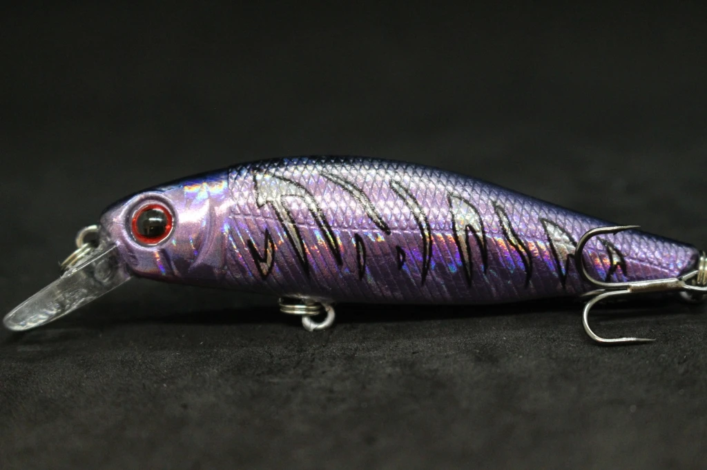 Color: PURPLE - wLure Minnow Fishing Lure Jerkbait 9g 8cm 0.5 Meter Depth 2 Black Nickle #8 Hooks 3D Hard Eyes M606