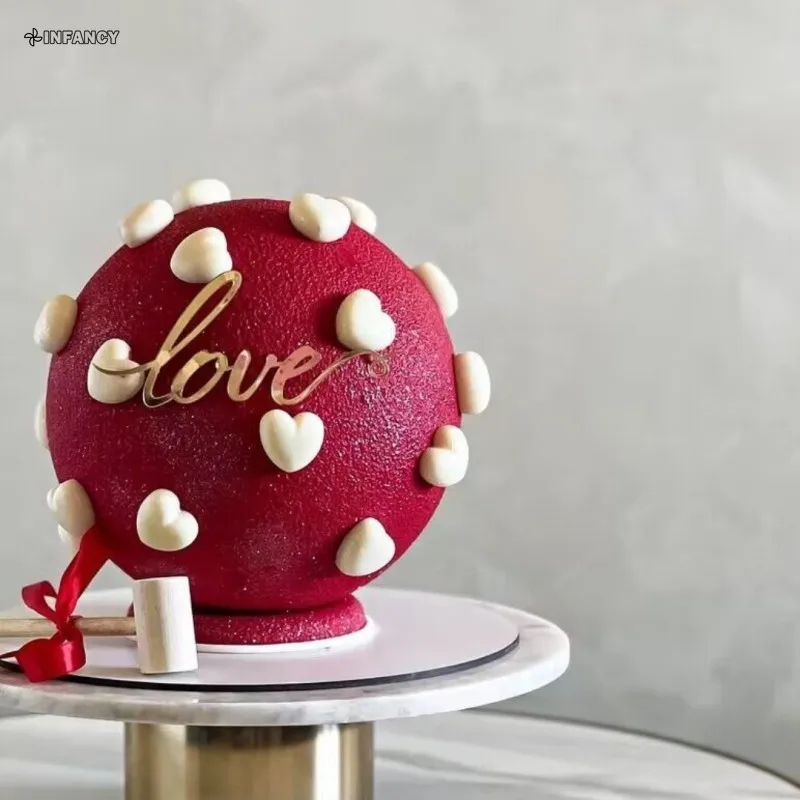 Color: Red - 1Pcs Acrylic Cake Toppers Supplies Hearts Baking Dessert Flag Placard Decoration Proposal Anniversary Wedding Birthday Party