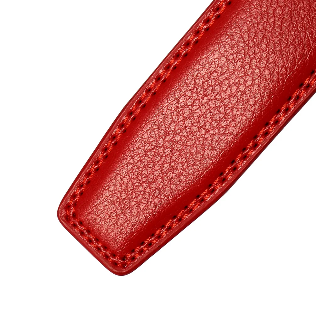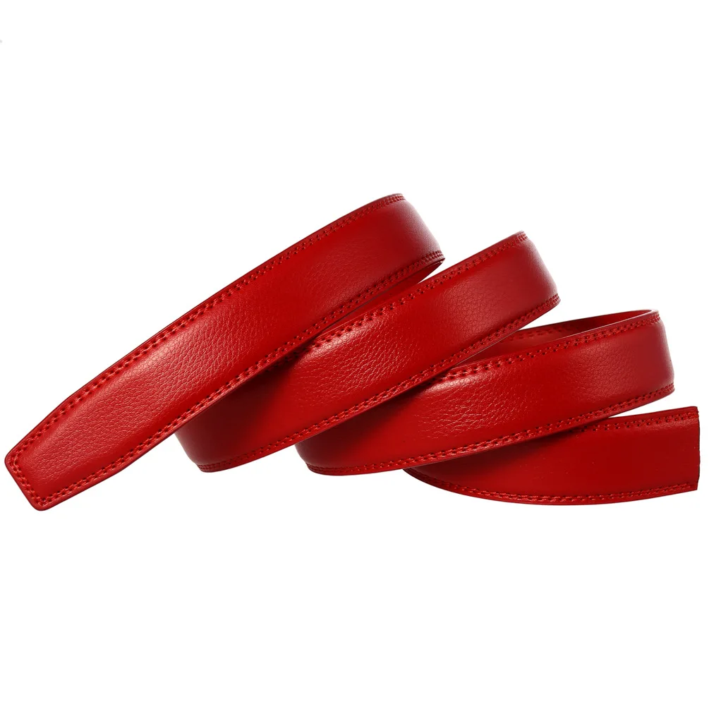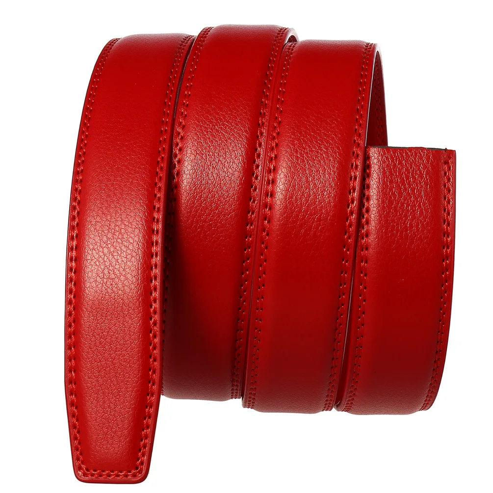 Color: Red, Belt Length: 125cm - 90-130cm Brand No Buckle 3.0cm Wide Genuine Leather Automatic Belt Body Strap Without Buckle Belts Men Good Quality No Holes