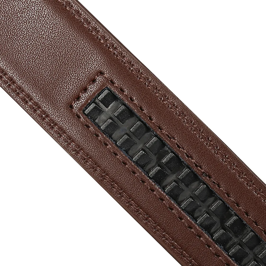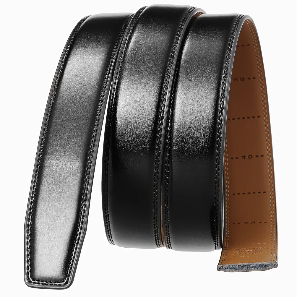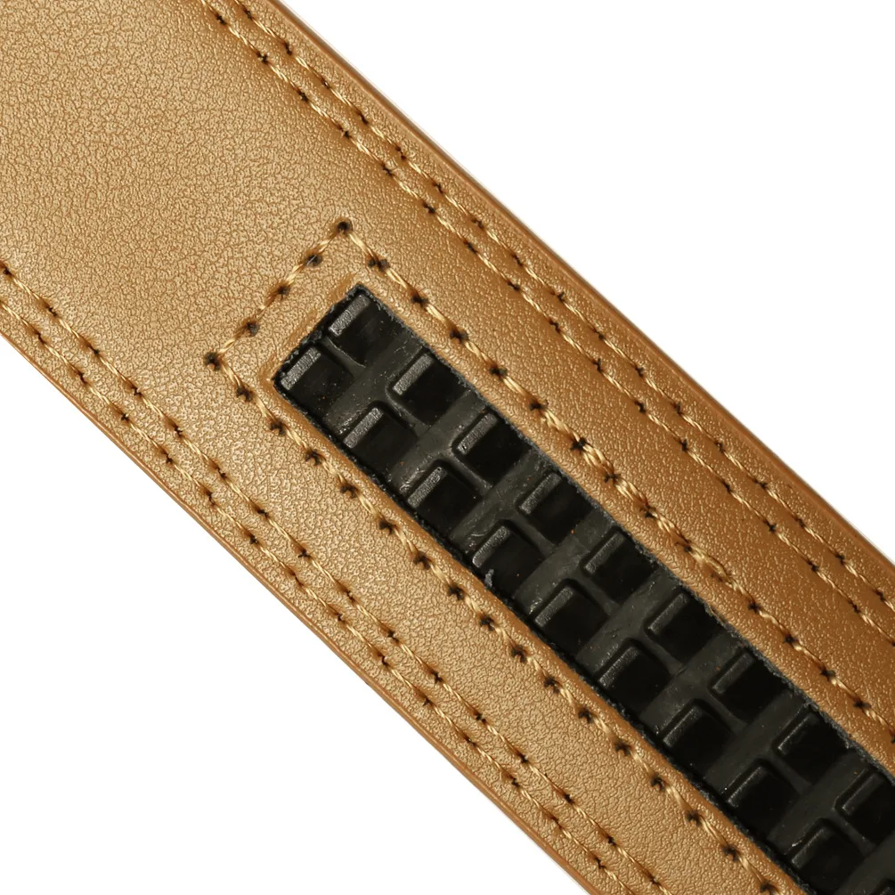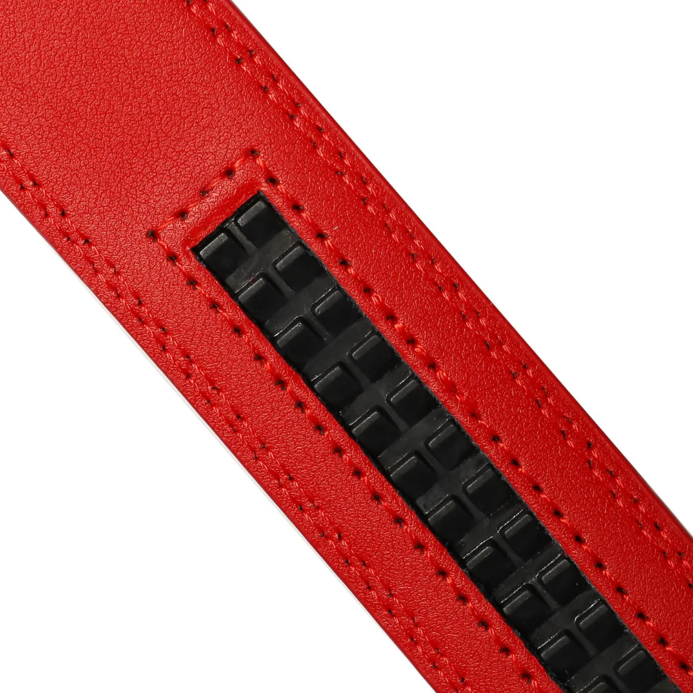 Color: Red, Belt Length: 125cm - 90-130cm Brand No Buckle 3.0cm Wide Genuine Leather Automatic Belt Body Strap Without Buckle Belts Men Good Quality No Holes