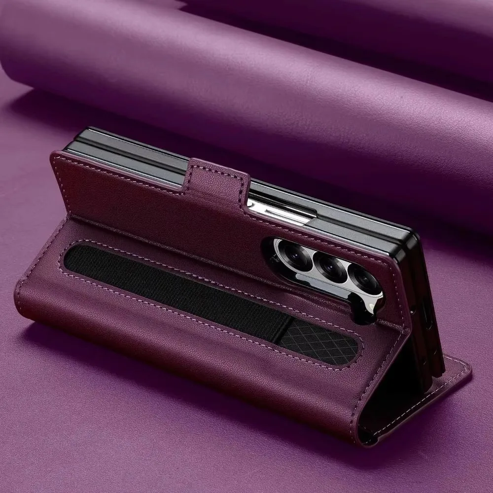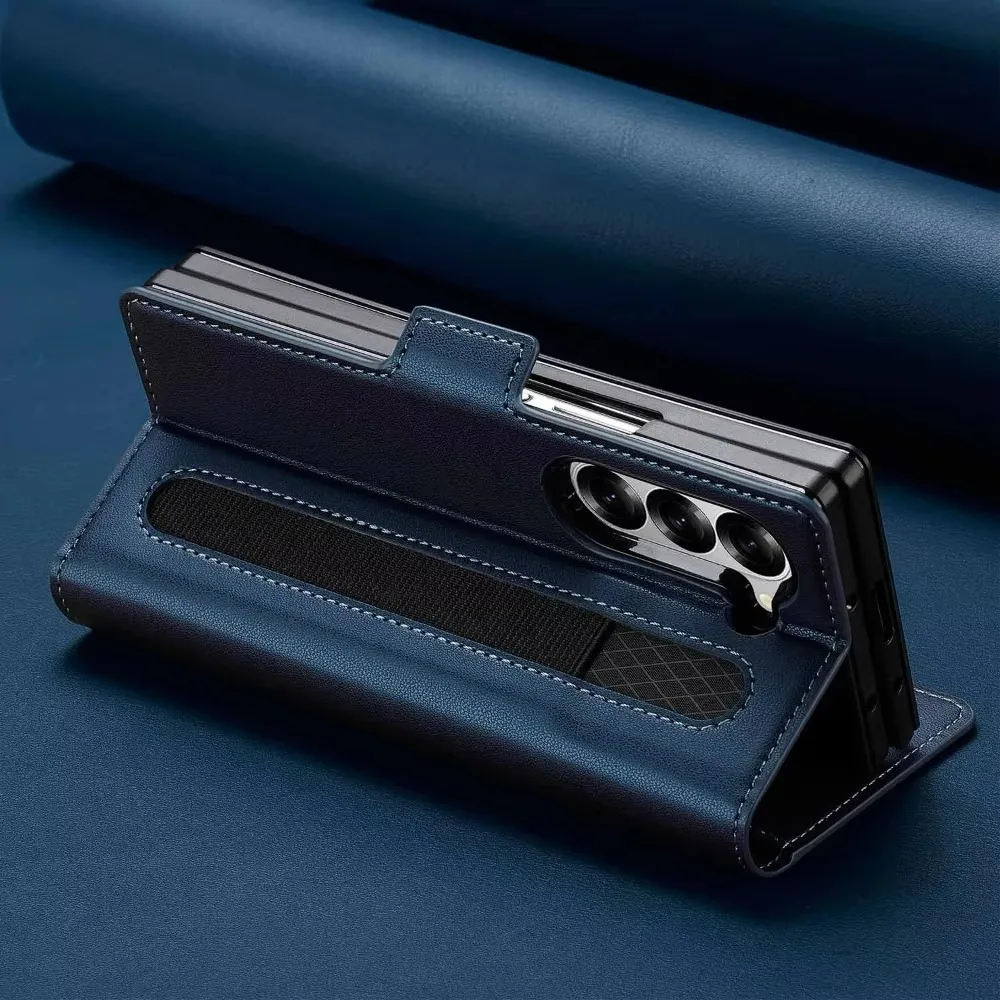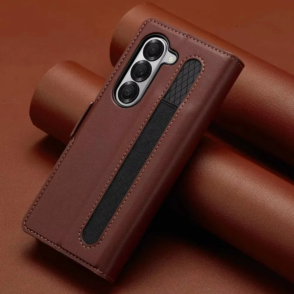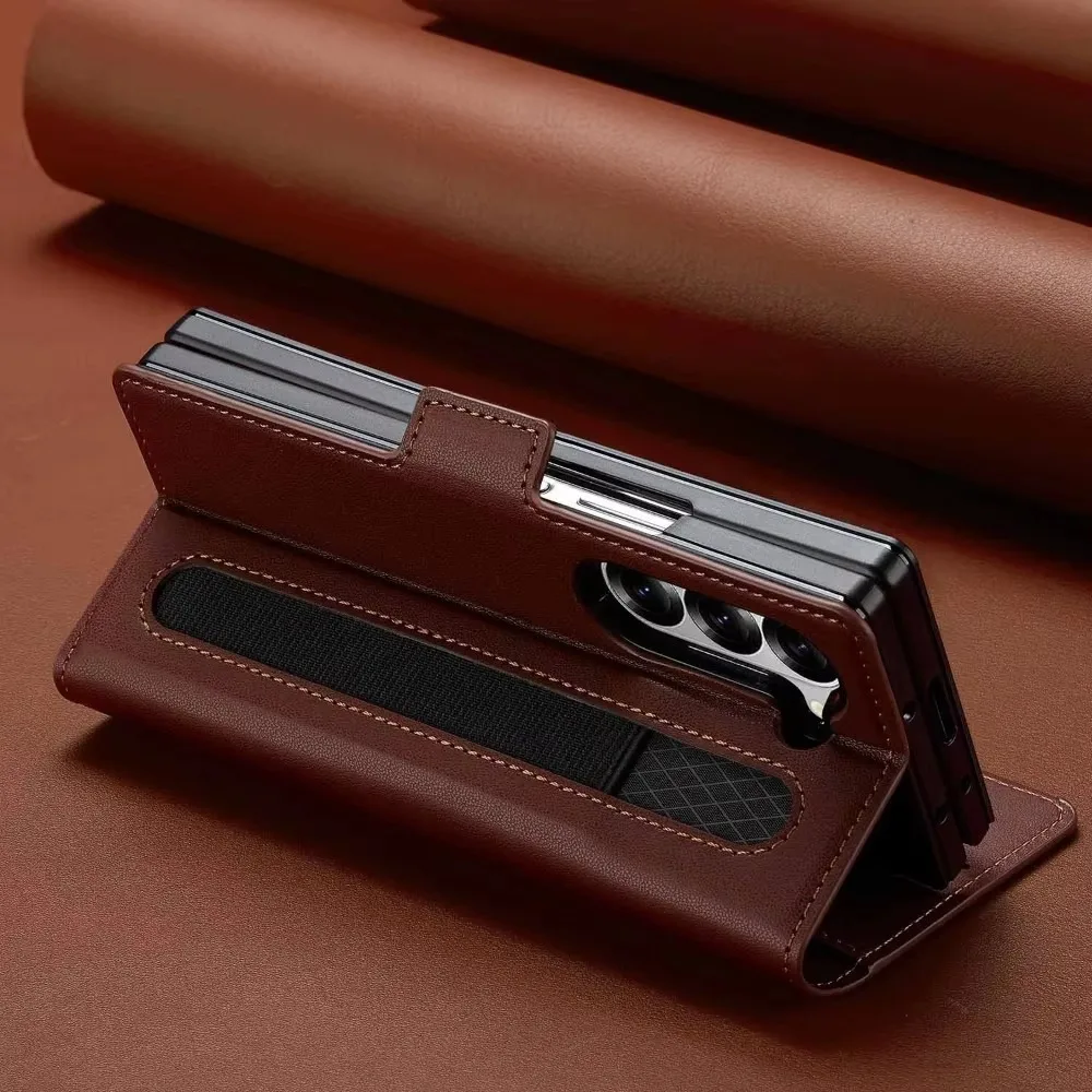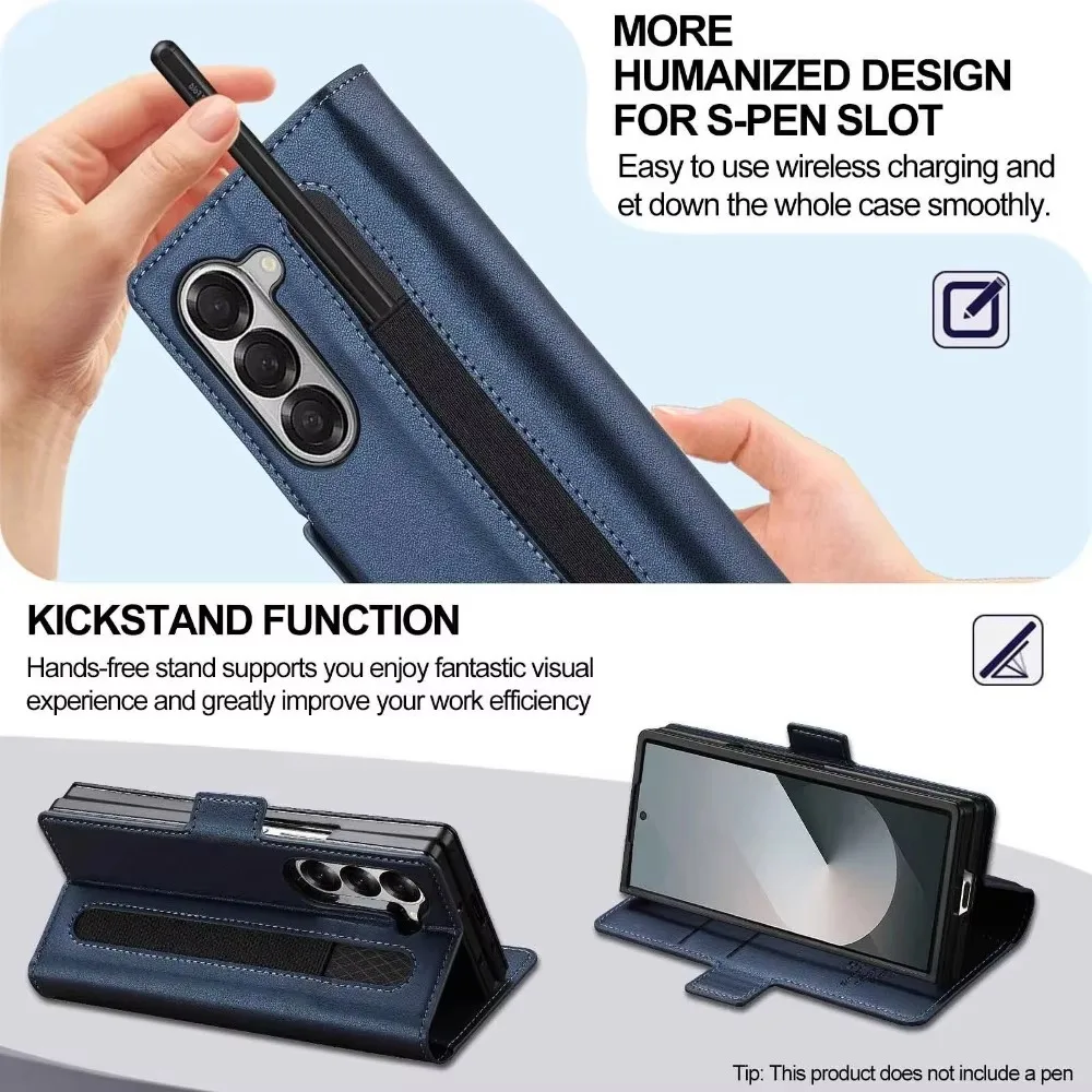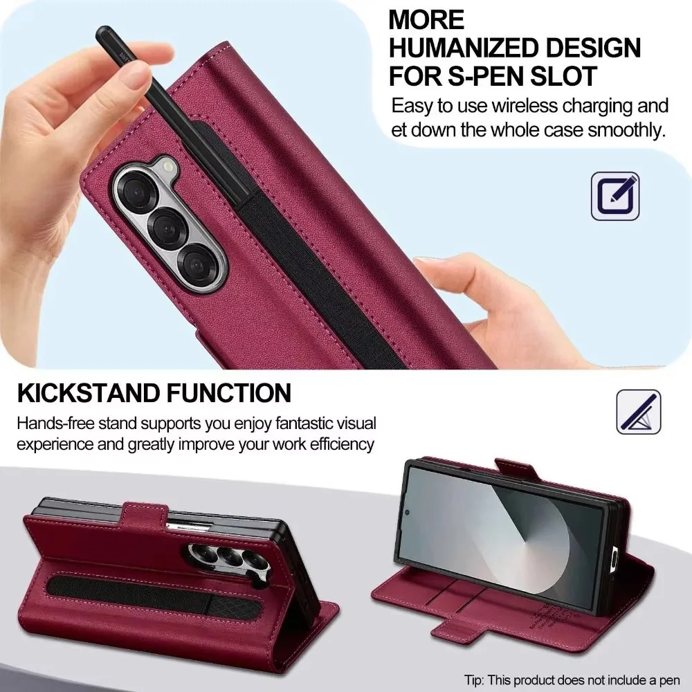 Premium Leather Phone Case for Samsung Galaxy Z Fold 7 6 5 4 3 Fold6 Fold5 Fold4 5G with Pen Holder Wallet Flip Phone Cover