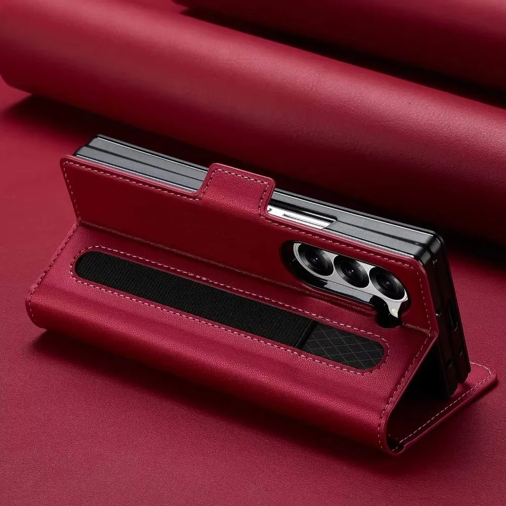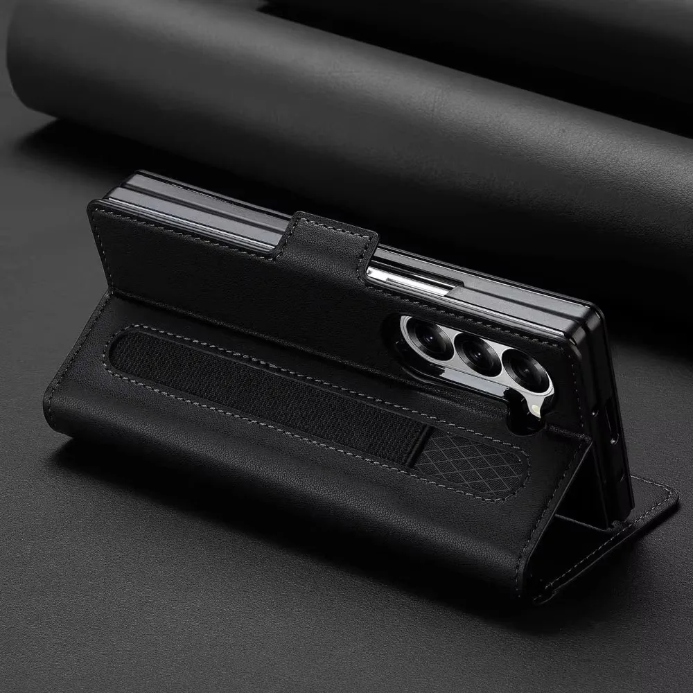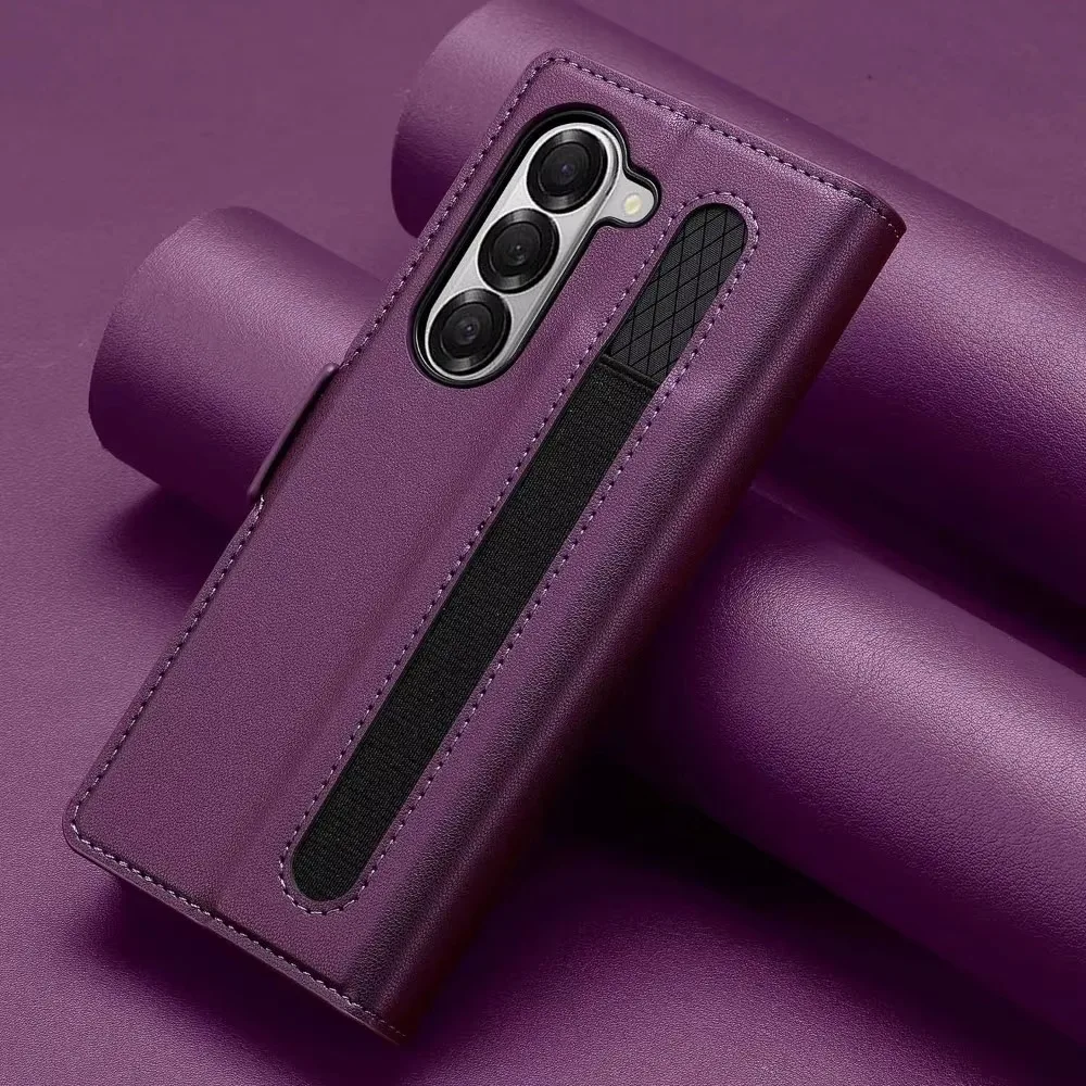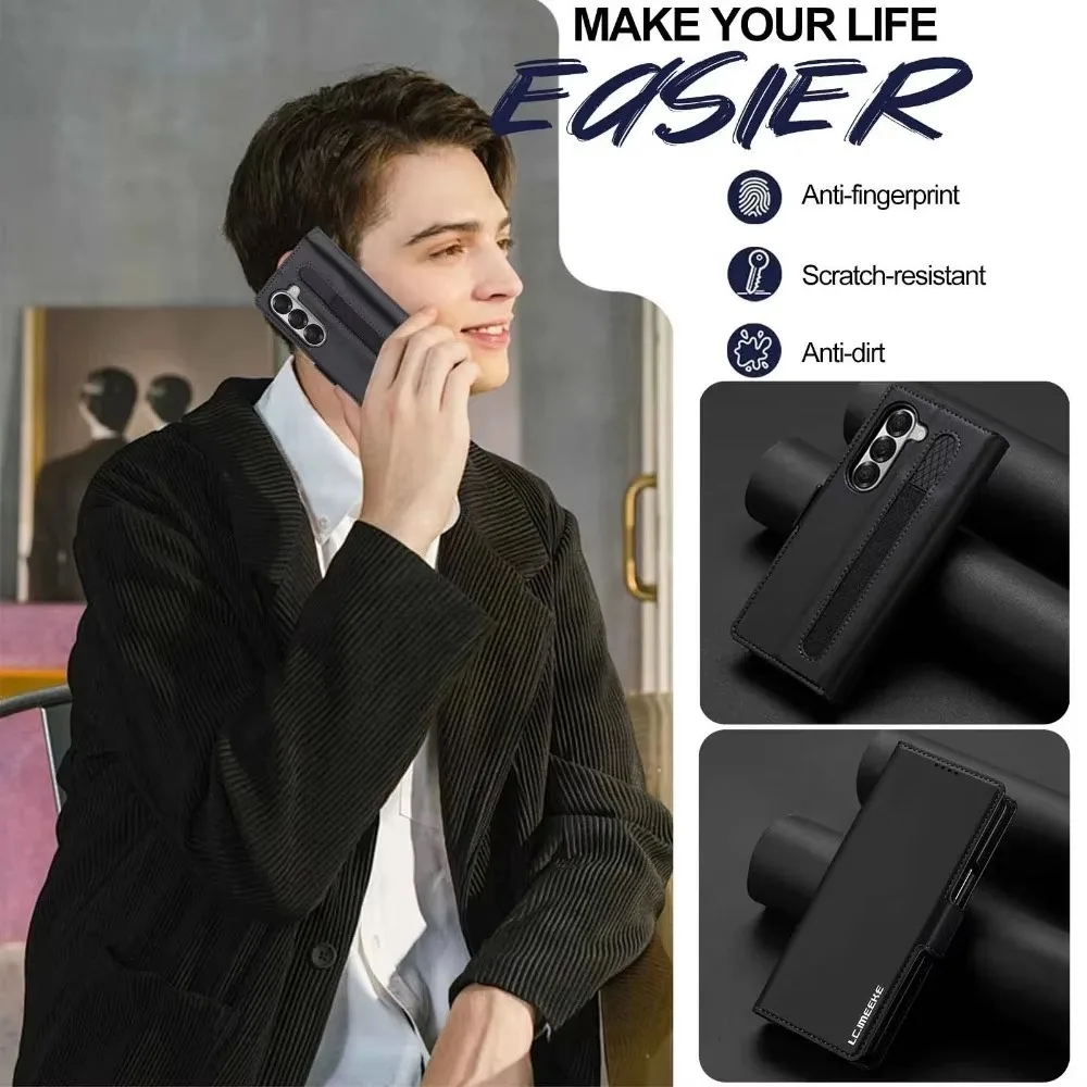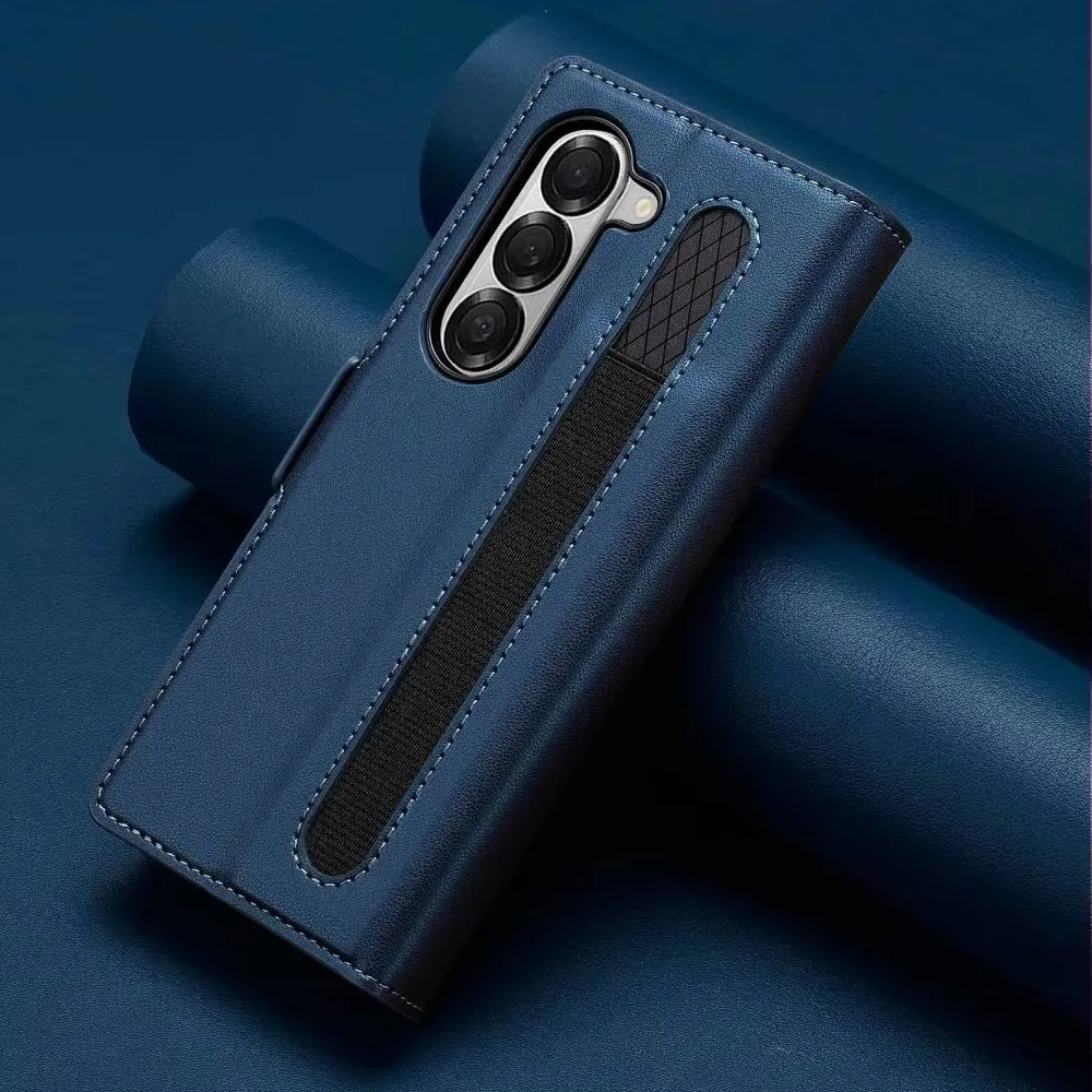 Premium Leather Phone Case for Samsung Galaxy Z Fold 7 6 5 4 3 Fold6 Fold5 Fold4 5G with Pen Holder Wallet Flip Phone Cover