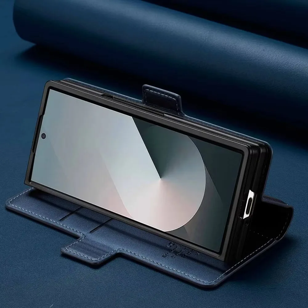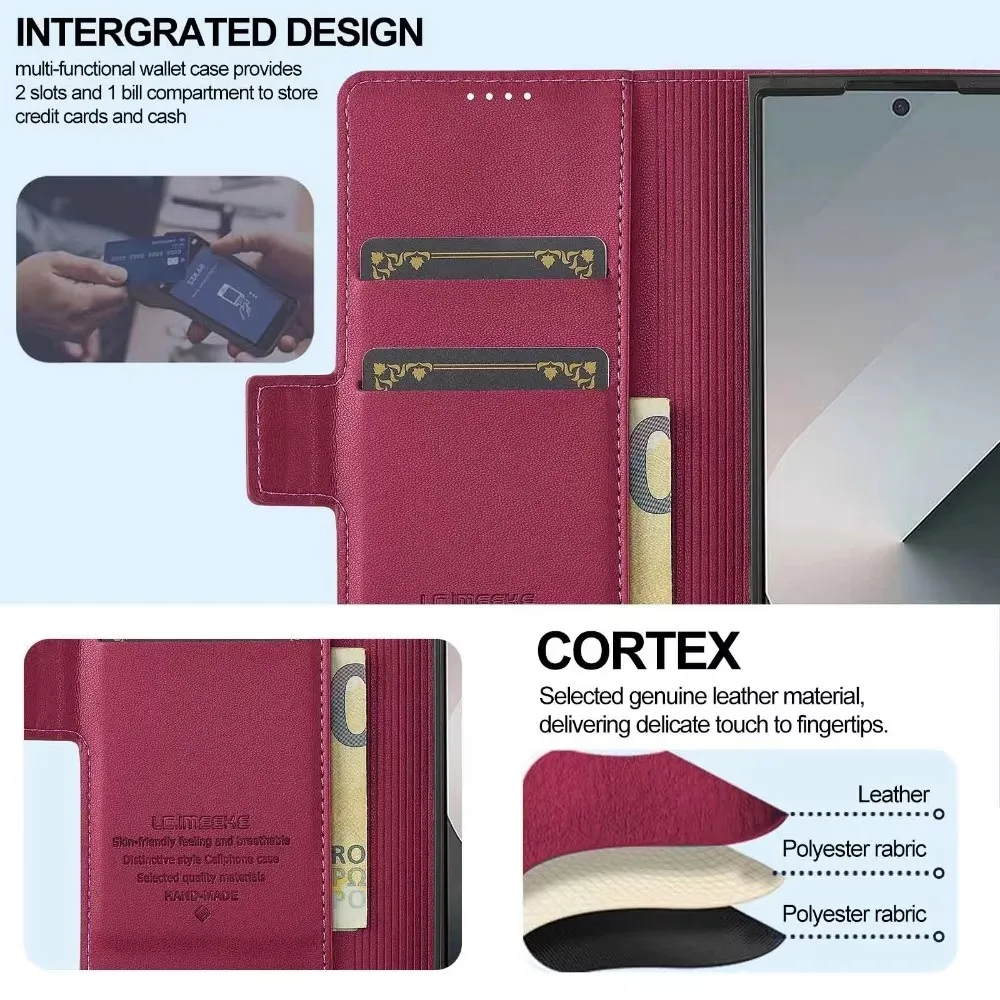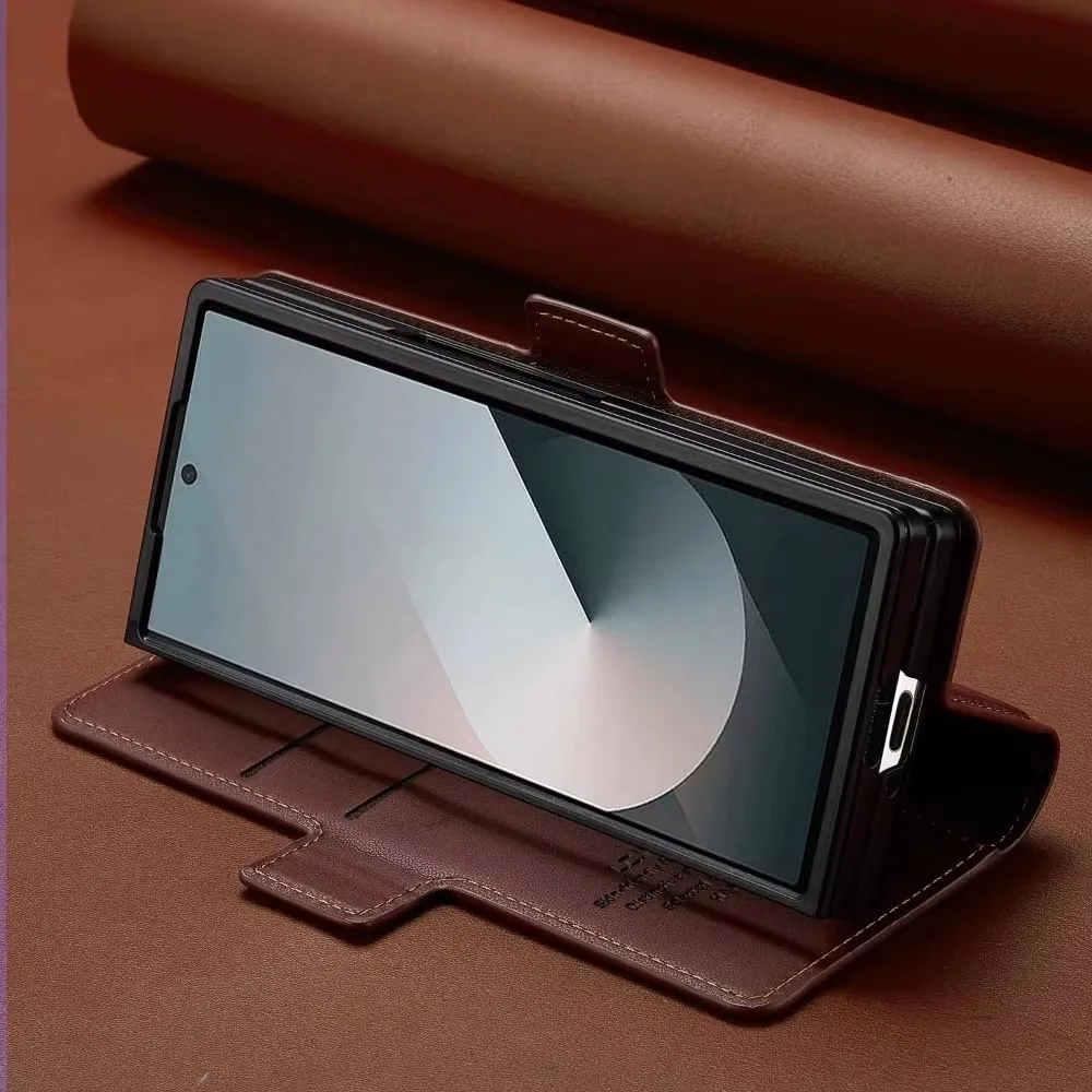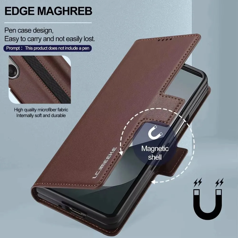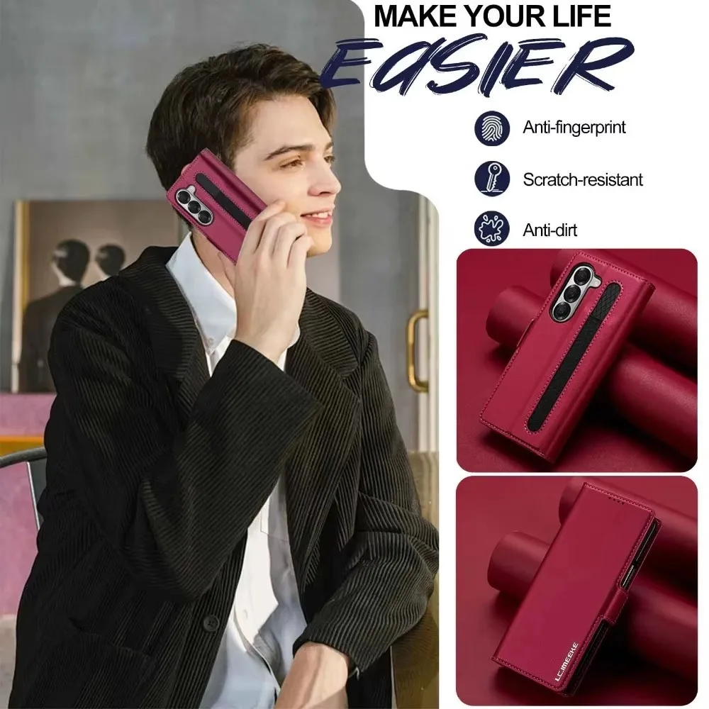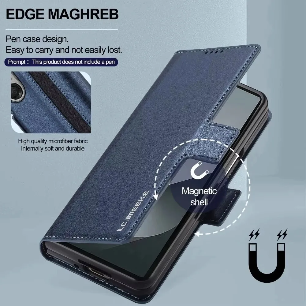 Premium Leather Phone Case for Samsung Galaxy Z Fold 7 6 5 4 3 Fold6 Fold5 Fold4 5G with Pen Holder Wallet Flip Phone Cover