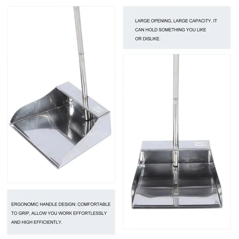 Color: Red - Dustpan Long Pan Metal Cleaning Handle Pans Upright Handled Kitchen Outdoor Outdoor Broom Dust Duty Heavy Stainless Steel