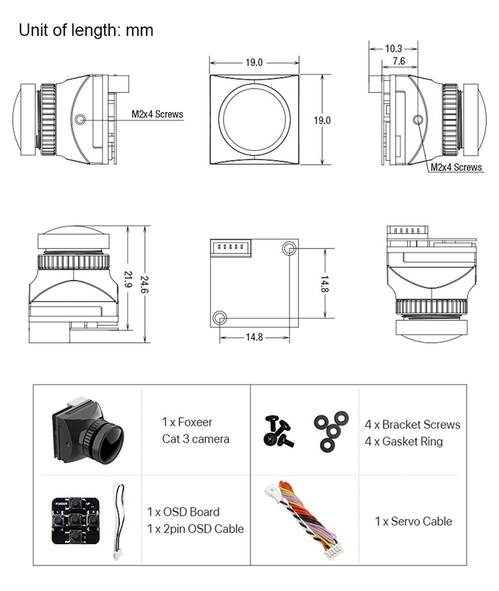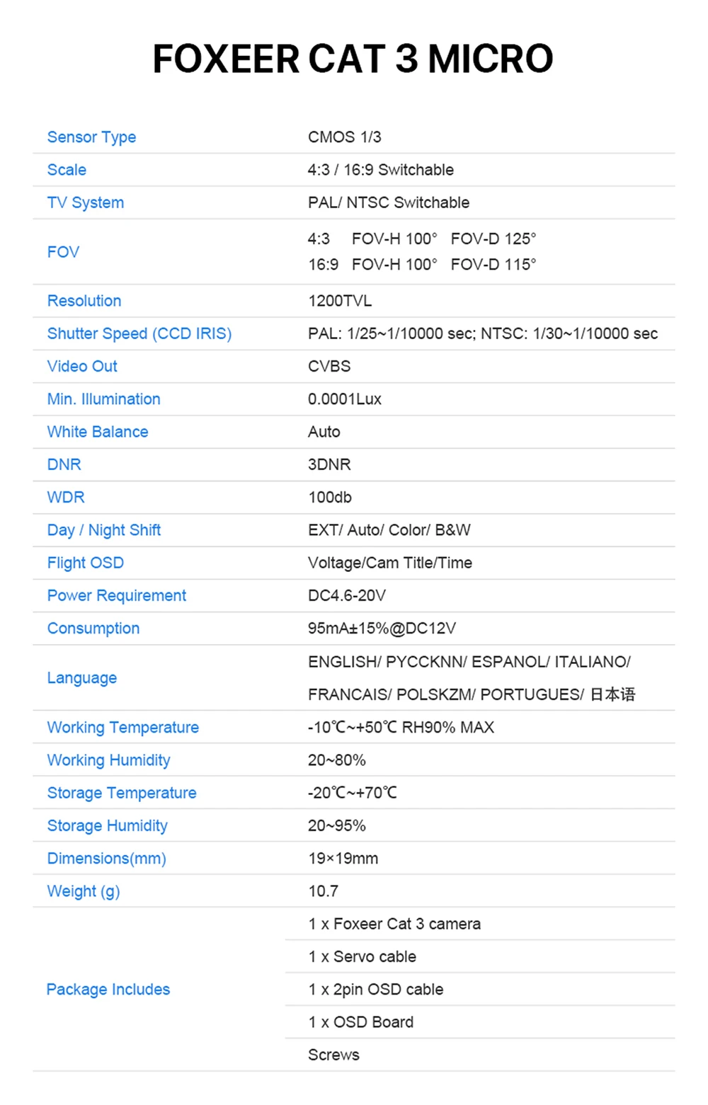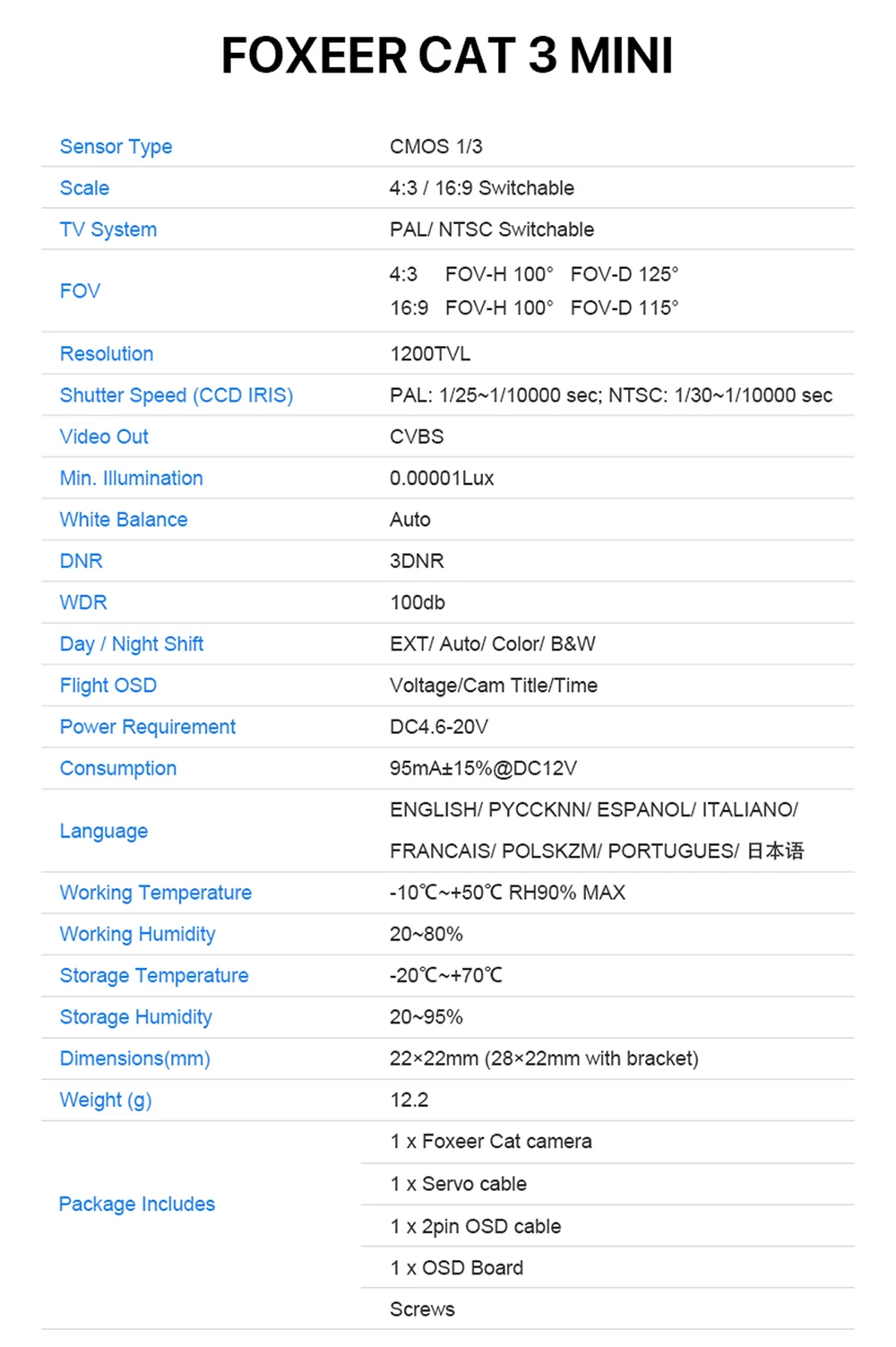 3.Mini FPV Camera: Foxeer Cat 3 Micro Dimensions(mm): 19x19mm