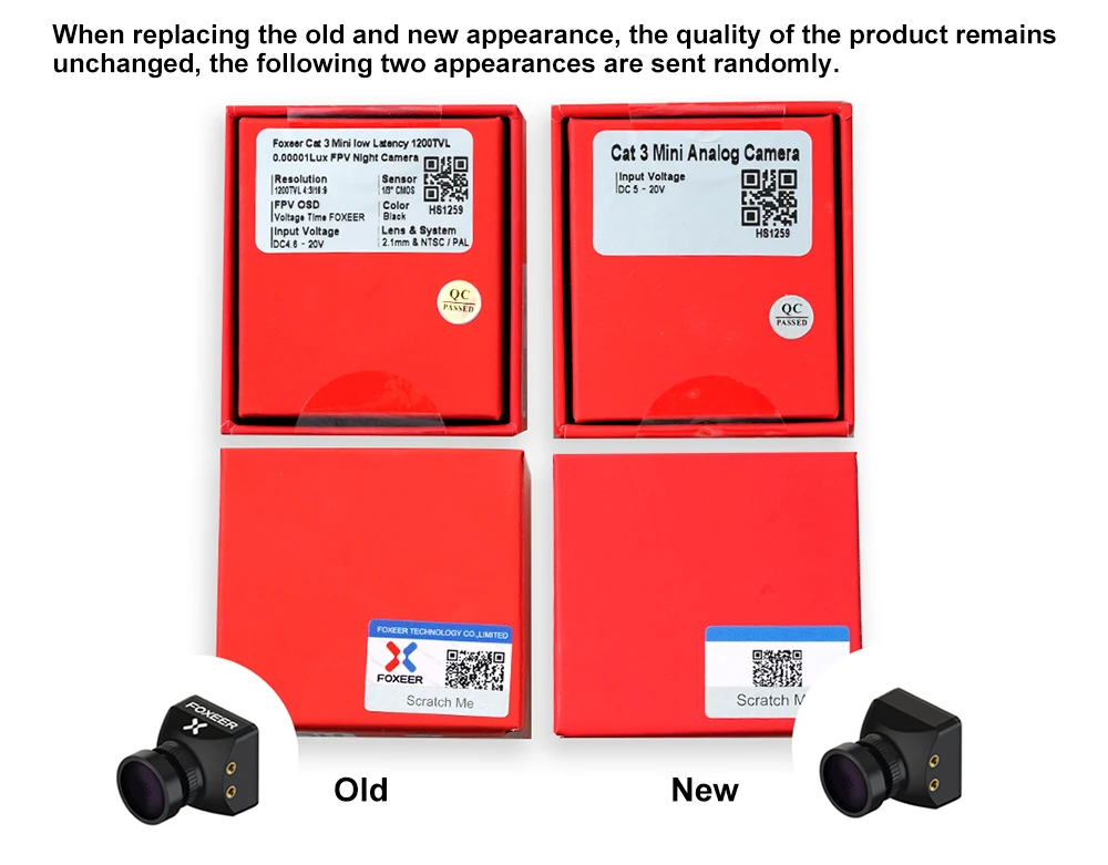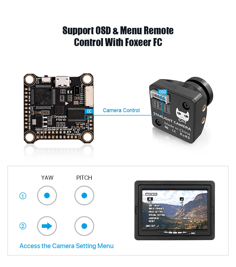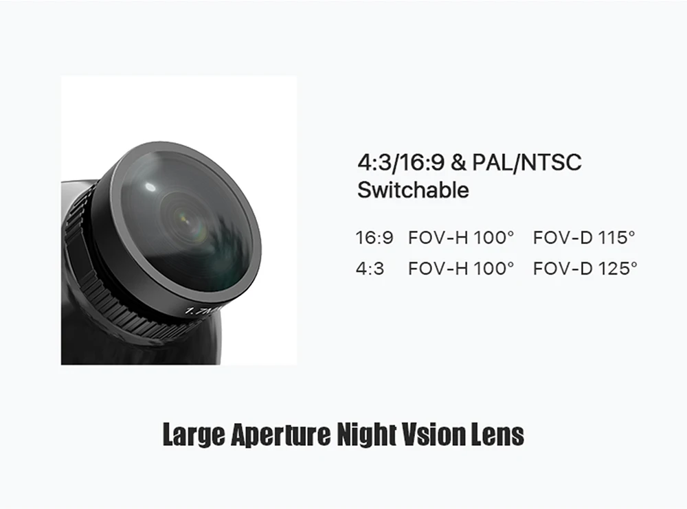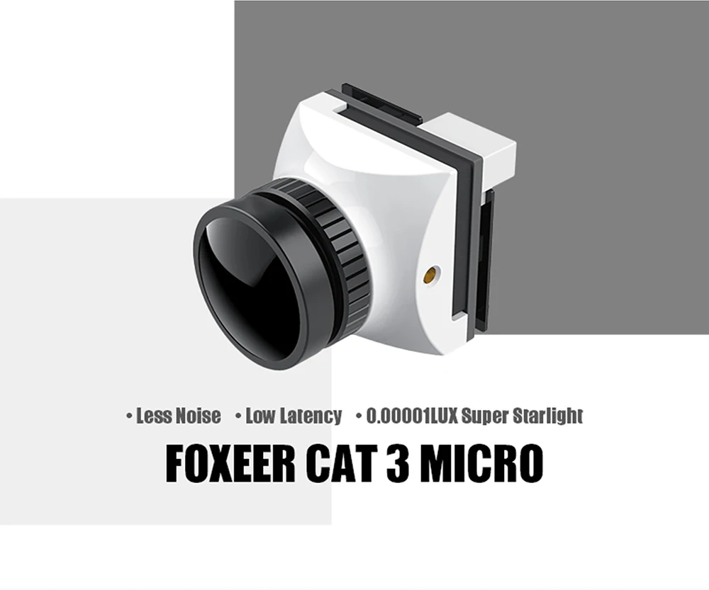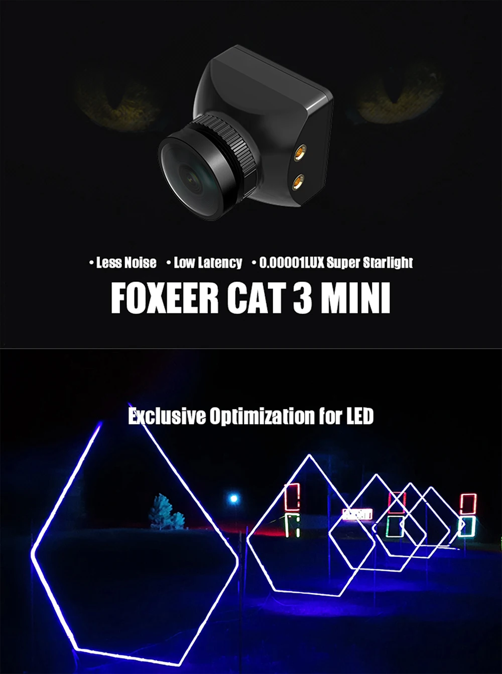 Foxeer Cat 3 Micro Mini FPV Camera is less noise,low latency, 0.00001Lux super starlight. Exclusive optimization for LED,Large Aperture Night Vision Lens.Scale:4:3/16: 9 Switchable TV System: PAL/ NTSC Switchable