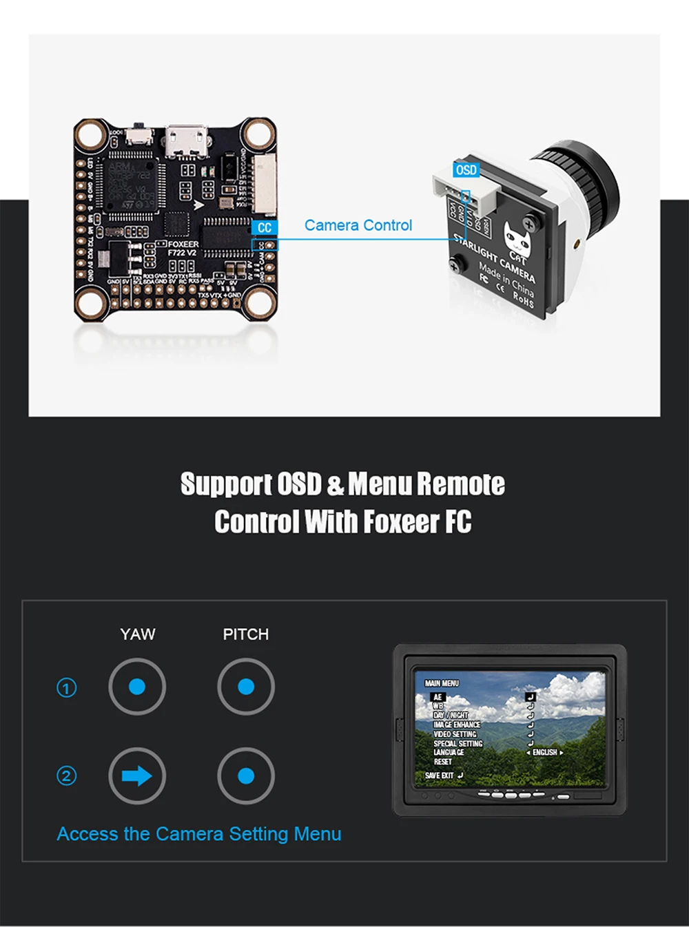 5.Support: OSD & Menu Remote Control With Foxeer FC
