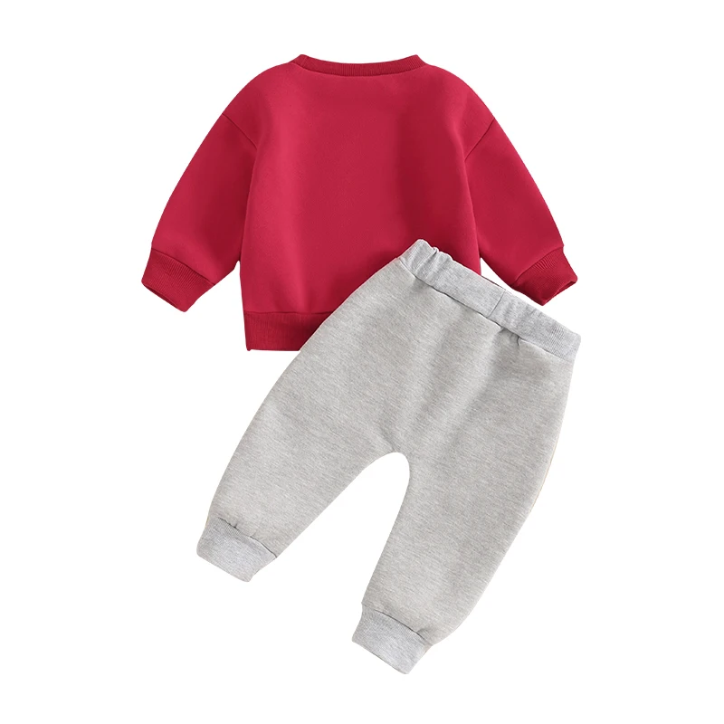 Baby 2Pcs Christmas Outfits Long Sleeve Santa Embroidery Sweatshirt and Pocket Pants Set Winter Clothes
