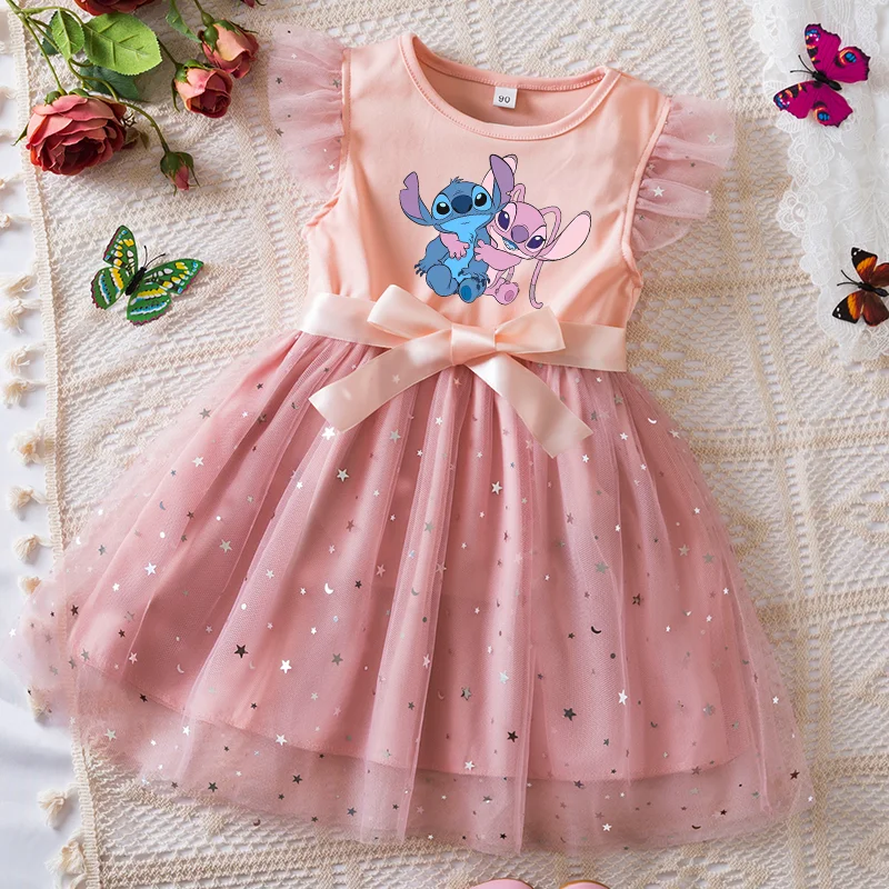 Color: Red, Kid Size: 9 - Lilo Stitch Girls Sequin Tutu Dress with Bow Flutter Sleeves Summer Princess Party Outfit for Toddler Kids 2-6 Years