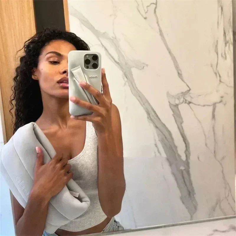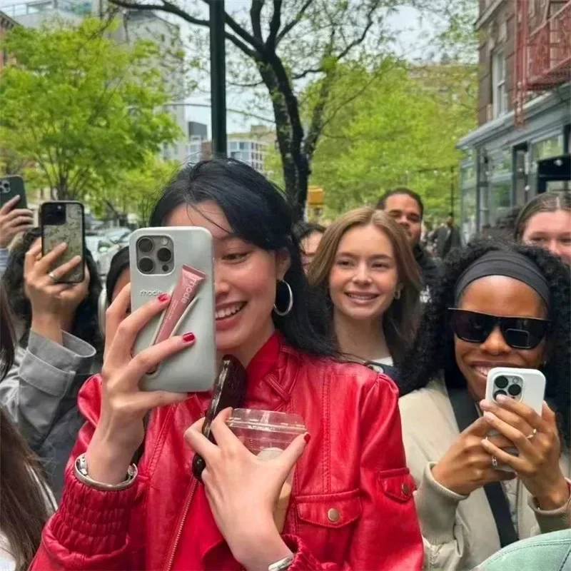 Color: Red, Material: Denim - Lipstick Soft Silicone DIY Rhode Phone Case for IPhone 16 Pro Max 16Pro 16Plus Portable Lip Gloss Holder Ins Hot Cover