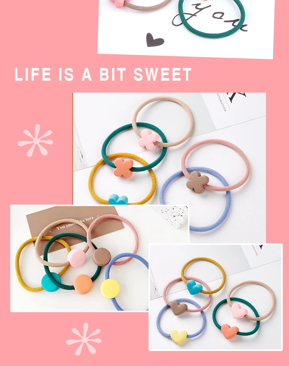Cute Girls Hair Bands Ties Round Heart Rubber Band Fashion Scrunchie Elastic Korean Hair Accessories Ponytail Holder Headband