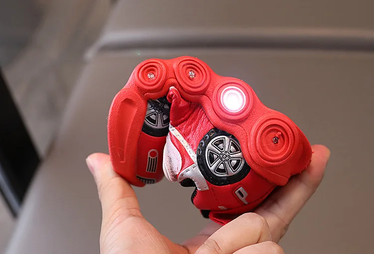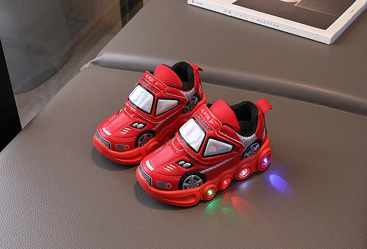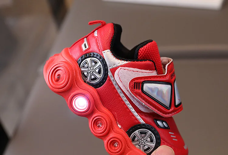 Color: Red, Shoe Size: 26 - Diseny Kids'Casual Shoes Led Light Car Club Cartoon PU Leather Spring Shoes For Children Anti-slip Red Blue Shoes Size 21-30
