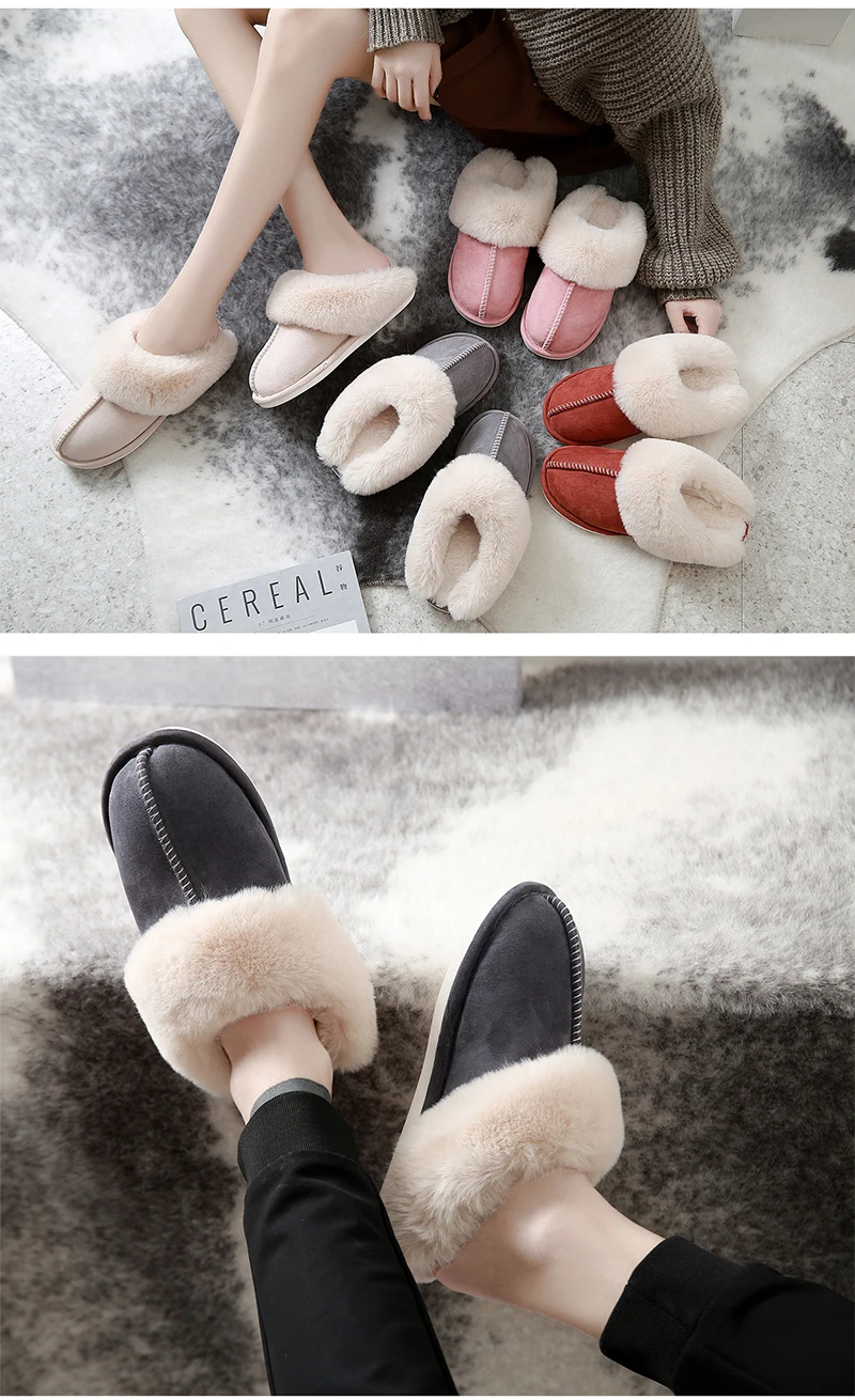 Color: Red, Shoe Size: 36 - Women's Faux Fur Slippers 2024 New Warm Thicked Plush Bedroom Sandals Woman Comfort Soft Sole Home Couple Winter Shoes Slides