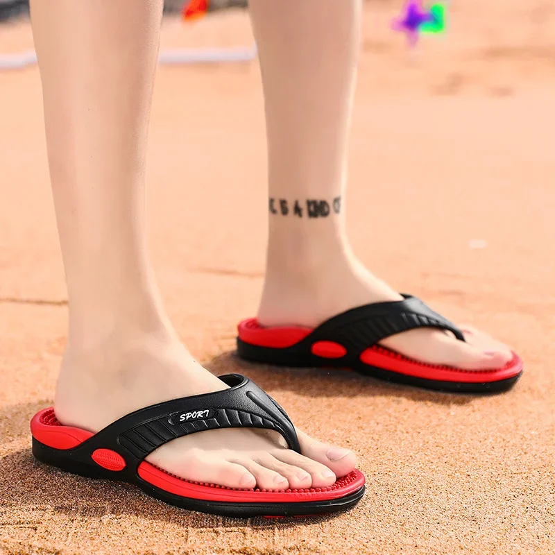 Color: Red, Shoe Size: 40 - Massage Flip Flops for Men Summer Breathable Beach Shoes Sandals Men Luxury Flip Flops Breathable Plus Big Size Men Slippers 46