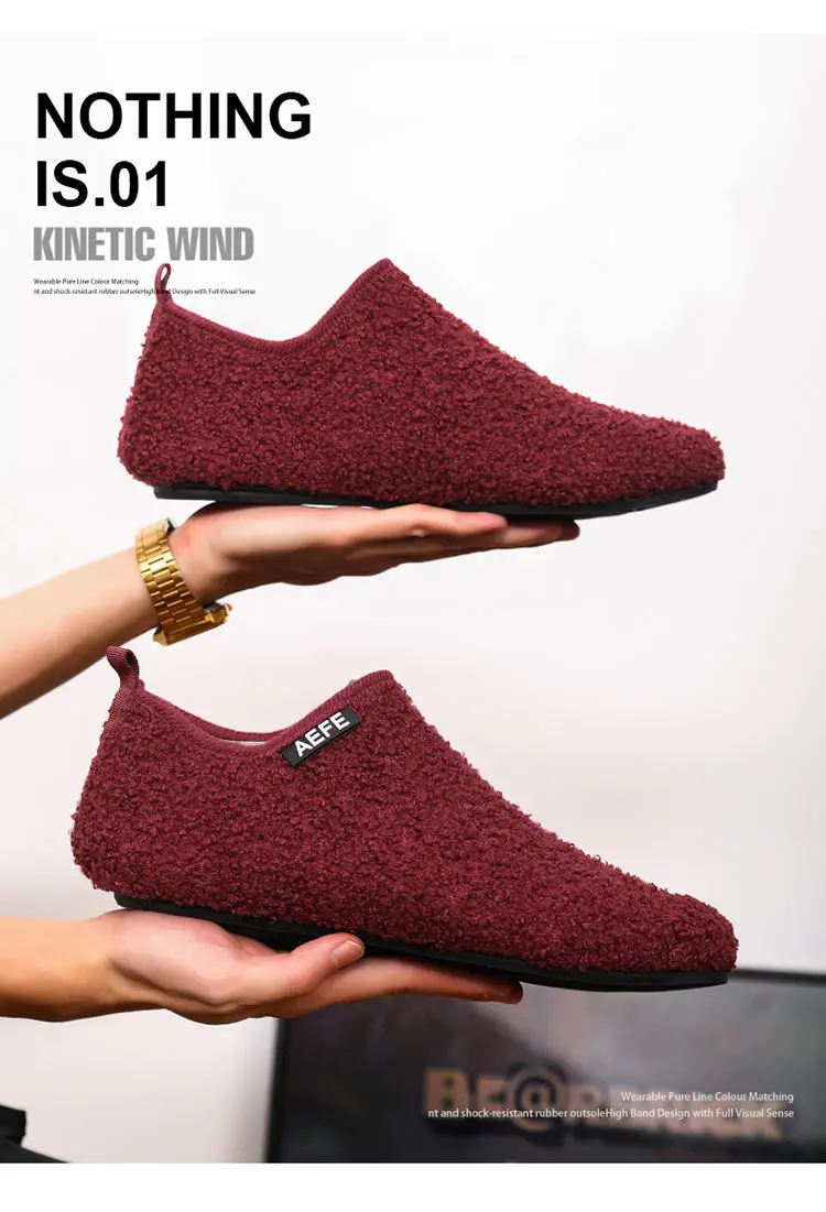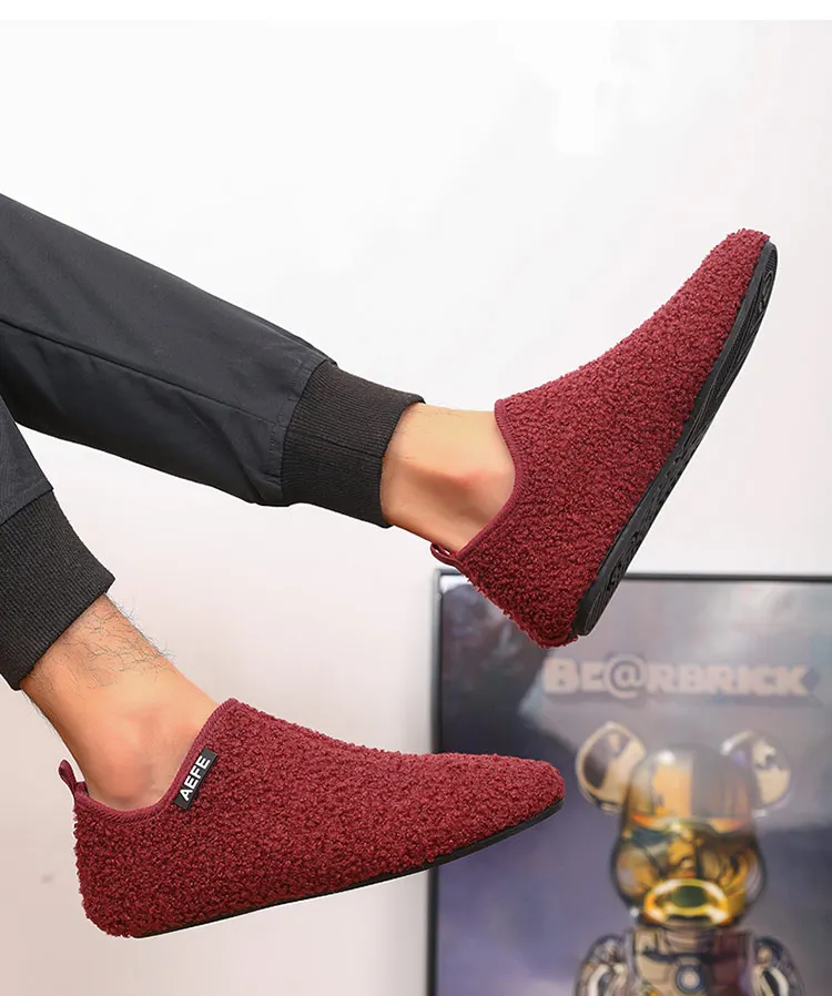 Color: Red, Shoe Size: 41, Ships From: CHINA - Winter Fashion Men Slippers Plush Male Home Cotton Shoes Warm Anti-slip Men's Casual Shoes Flexible Solid Flats 39-47 Slip On