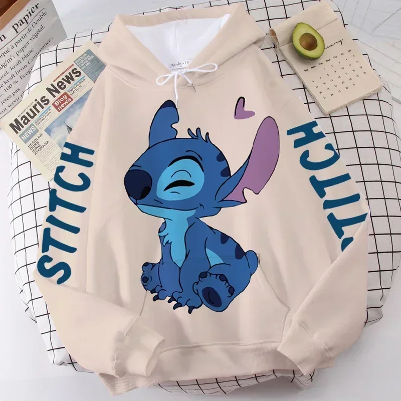Color: Red, Size: M - Disney Hoodie Fashion Stitch Angel Monster Letter Cartoon Sweatshirt Pullover Cute Harajuku Unisex Women's Pocket Top