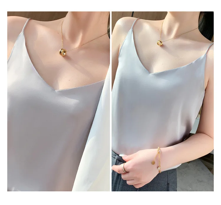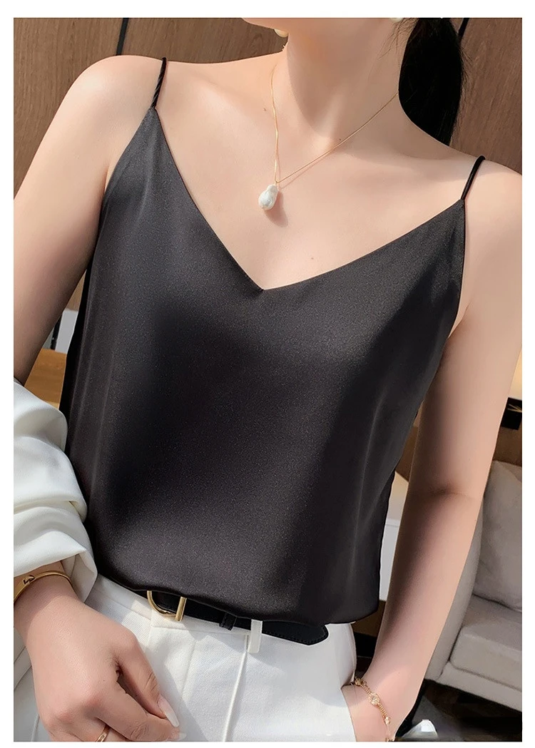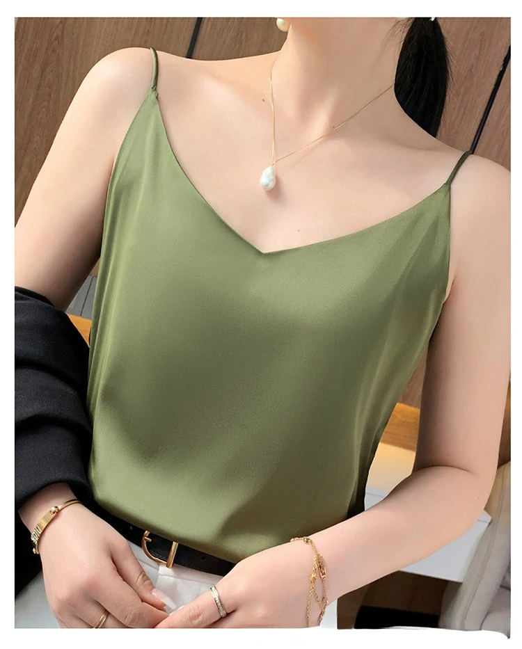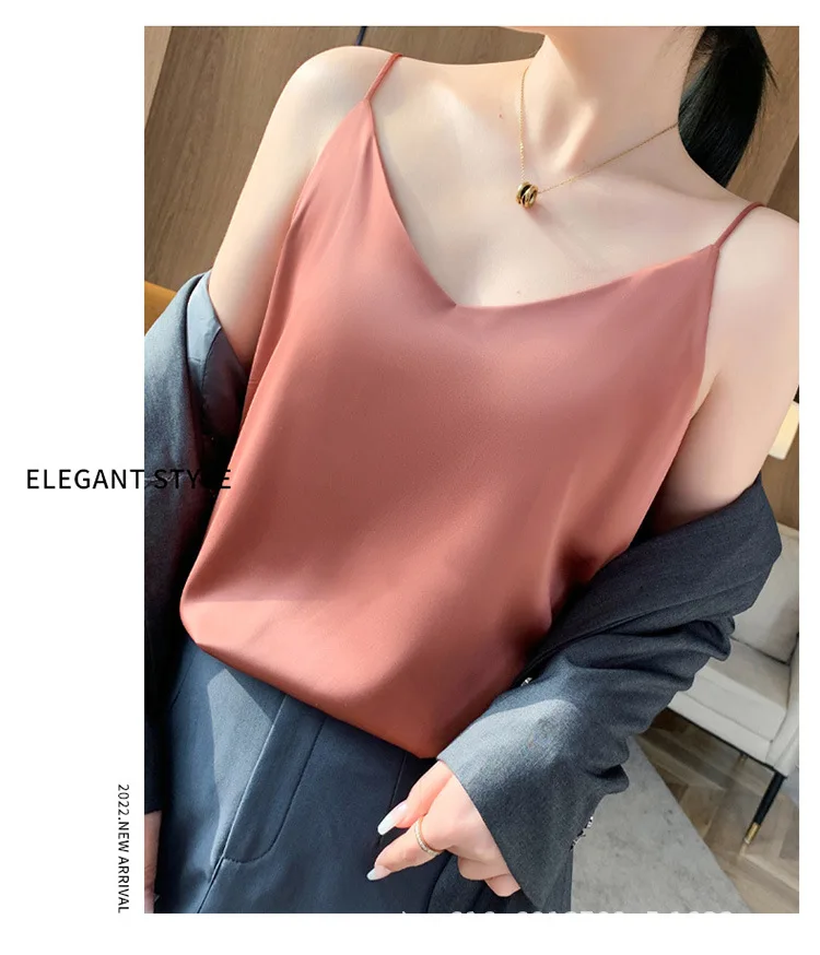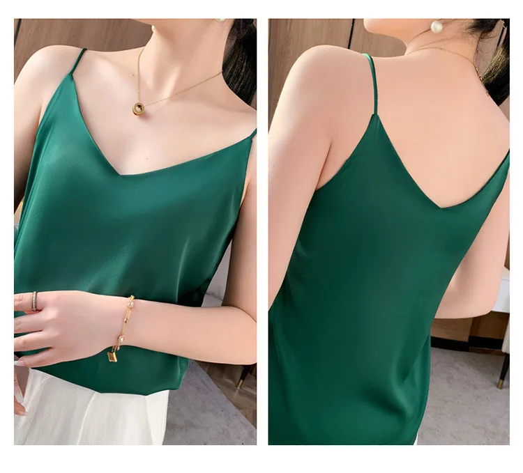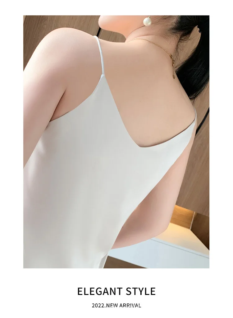 Color: Red, Size: XL - Fashion Silky Camisole Women's Inner With White Bottoming Satin Top Summer V-neck Thin Section