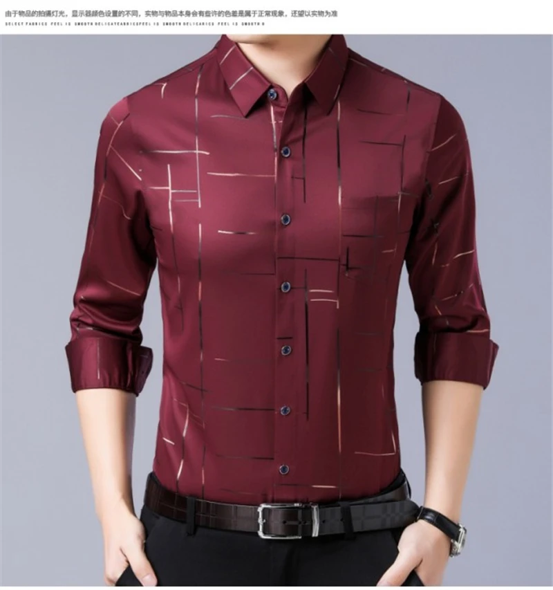 Color: Red, Size: XL - Men's Casual and Fashionable Long Sleeved Printed Shirt, Non Ironing and Wrinkle Resistant Business Top