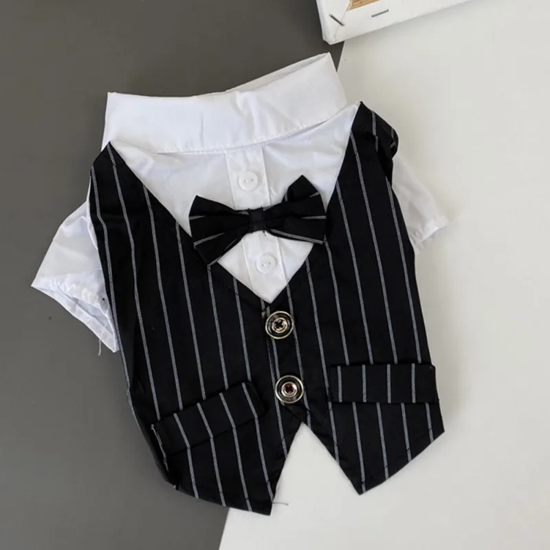Color: Red, Size: XXS - Dog Gentleman Wedding Suit Clothes Dog Suit Bow Tie Clothes Halloween Christmas Costume For Small Dogs Teddy Bulldog