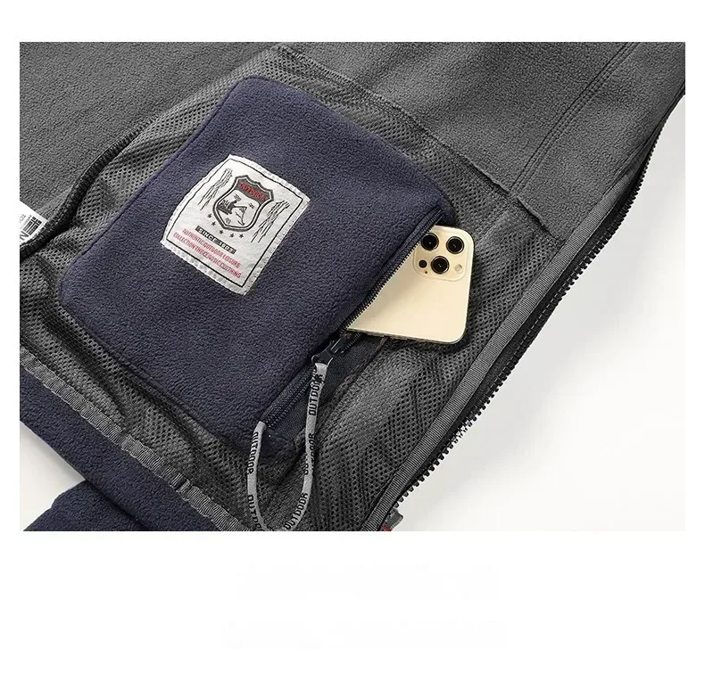 Color: Red, Size: XXS - Men Fleece Jacket Pockets Thicken Polar Norway Ski Jackets Cold-proof Overcoat Plus Size Outwear Autumn Winter Casual Warm Coat
